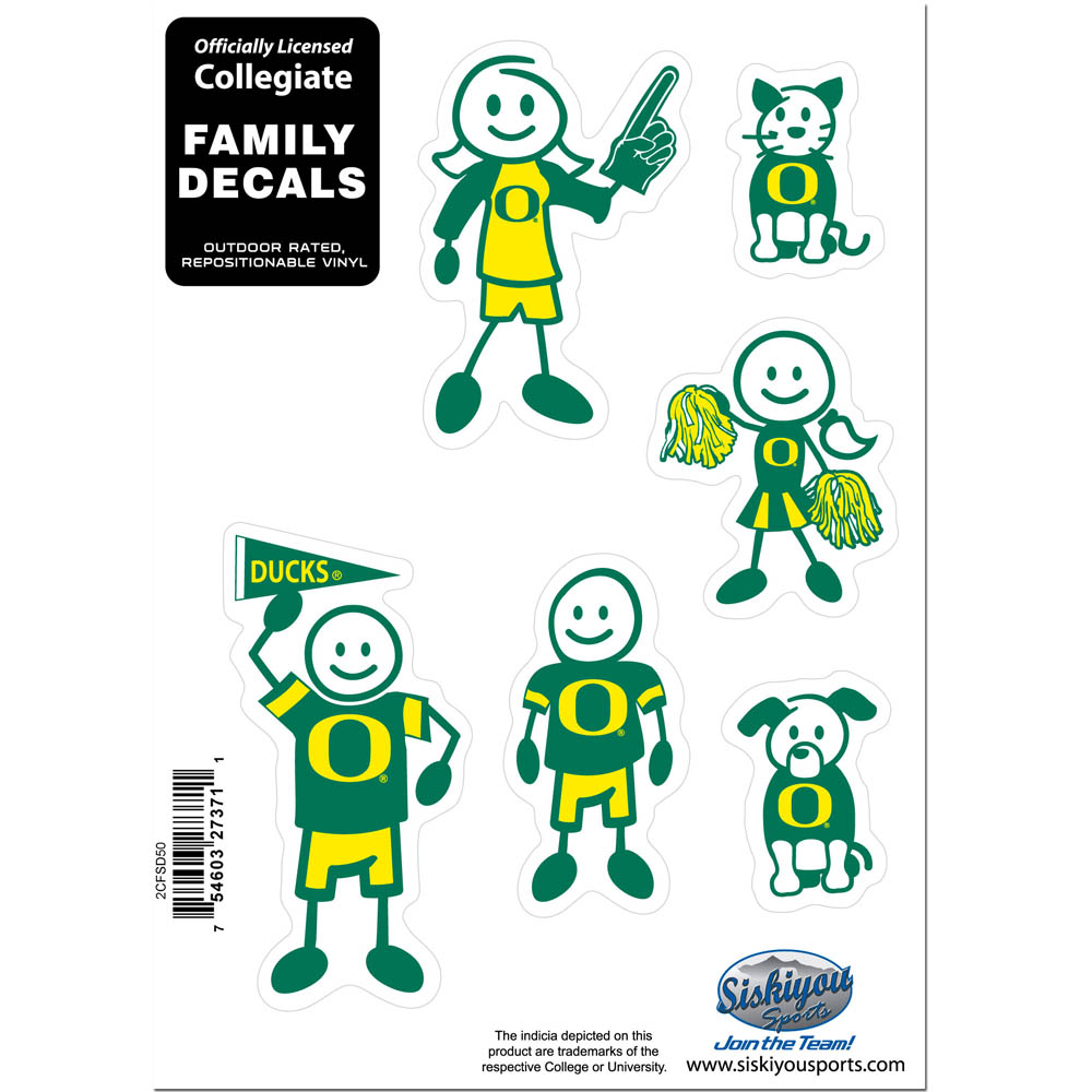 Show off your team pride with our Oregon Ducks family automotive decals. The set includes 6 individual family themed decals that each feature the team logo. The 5 x 7 inch decal set is made of outdoor rated, repositionable vinyl for durability and easy application.