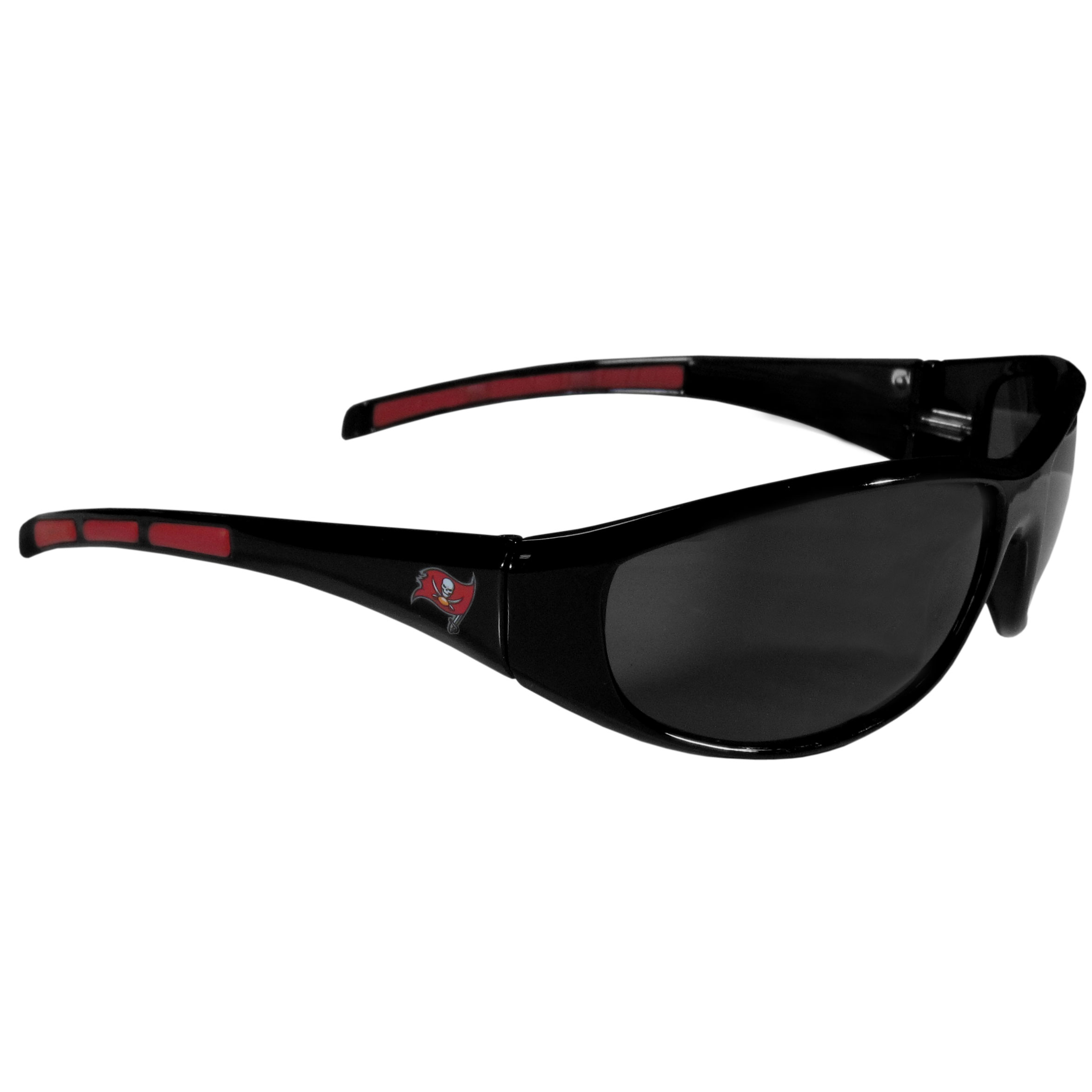 Whether you're in the stadium cheering your Tampa Bay Buccaneers to victory, driving or just lounging by the pool these stylish shades are the perfect accessory with a 100% UVA/UVB rating for maximum UV protection. The light-weight frames are built to last with flex hinges for comfort and durability. The colorful rubber grips on the arms of these fashionable sunglasses make them perfect for someone with an active lifestyle. Whether you are hiking, fishing, boating, running on the beach, golfing or playing your favorite sport these designer frames will stay in place for all of your outdoor activities. Our wrap sunglasses are true quality eyewear at an affordable price. Their classic wrap style is accented with bright team colors and team logos on both arms so you can show off your die-hard team pride while protecting your eyes from those bright sun rays.