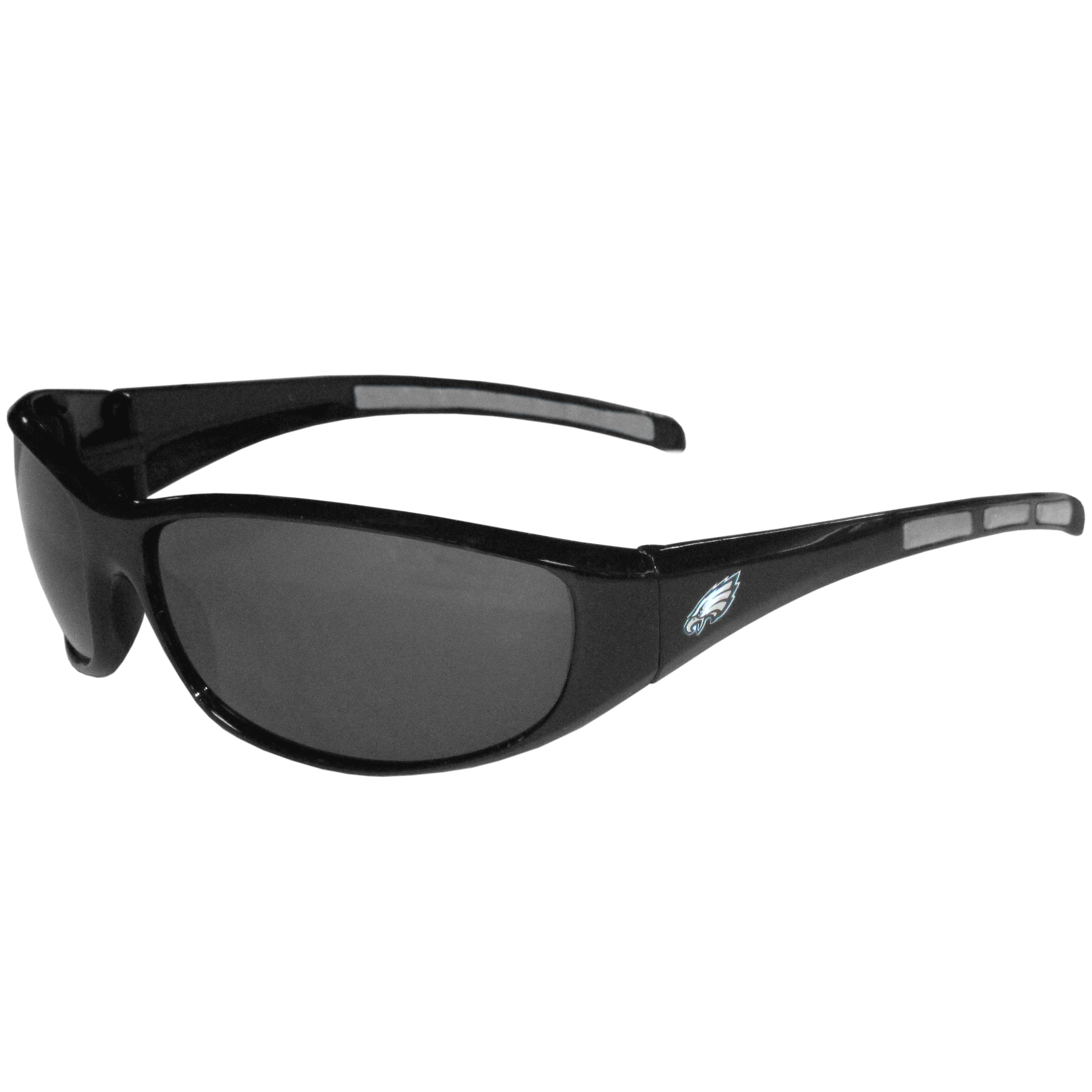 Whether you're in the stadium cheering your Philadelphia Eagles to victory, driving or just lounging by the pool these stylish shades are the perfect accessory with a 100% UVA/UVB rating for maximum UV protection. The light-weight frames are built to last with flex hinges for comfort and durability. The colorful rubber grips on the arms of these fashionable sunglasses make them perfect for someone with an active lifestyle. Whether you are hiking, fishing, boating, running on the beach, golfing or playing your favorite sport these designer frames will stay in place for all of your outdoor activities. Our wrap sunglasses are true quality eyewear at an affordable price. Their classic wrap style is accented with bright team colors and team logos on both arms so you can show off your die-hard team pride while protecting your eyes from those bright sun rays.