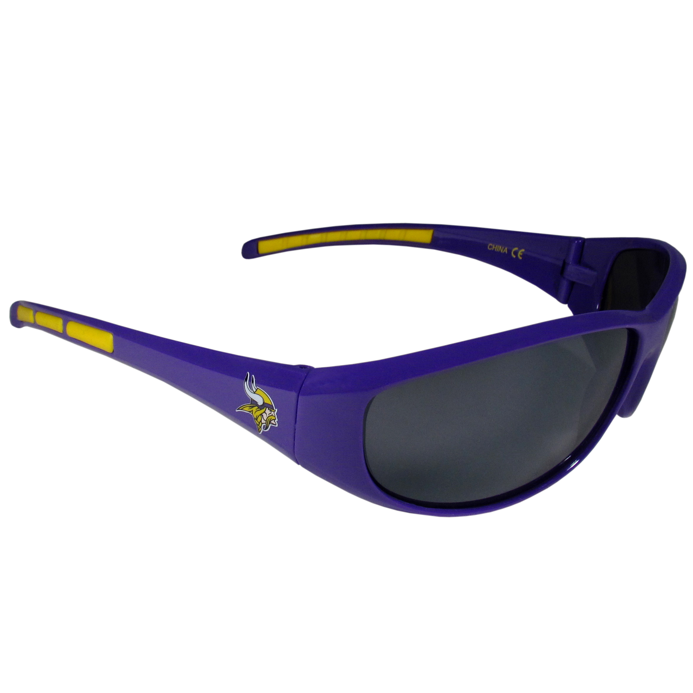 Whether you're in the stadium cheering your Minnesota Vikings to victory, driving or just lounging by the pool these stylish shades are the perfect accessory with a 100% UVA/UVB rating for maximum UV protection. The light-weight frames are built to last with flex hinges for comfort and durability. The colorful rubber grips on the arms of these fashionable sunglasses make them perfect for someone with an active lifestyle. Whether you are hiking, fishing, boating, running on the beach, golfing or playing your favorite sport these designer frames will stay in place for all of your outdoor activities. Our wrap sunglasses are true quality eyewear at an affordable price. Their classic wrap style is accented with bright team colors and team logos on both arms so you can show off your die-hard team pride while protecting your eyes from those bright sun rays.