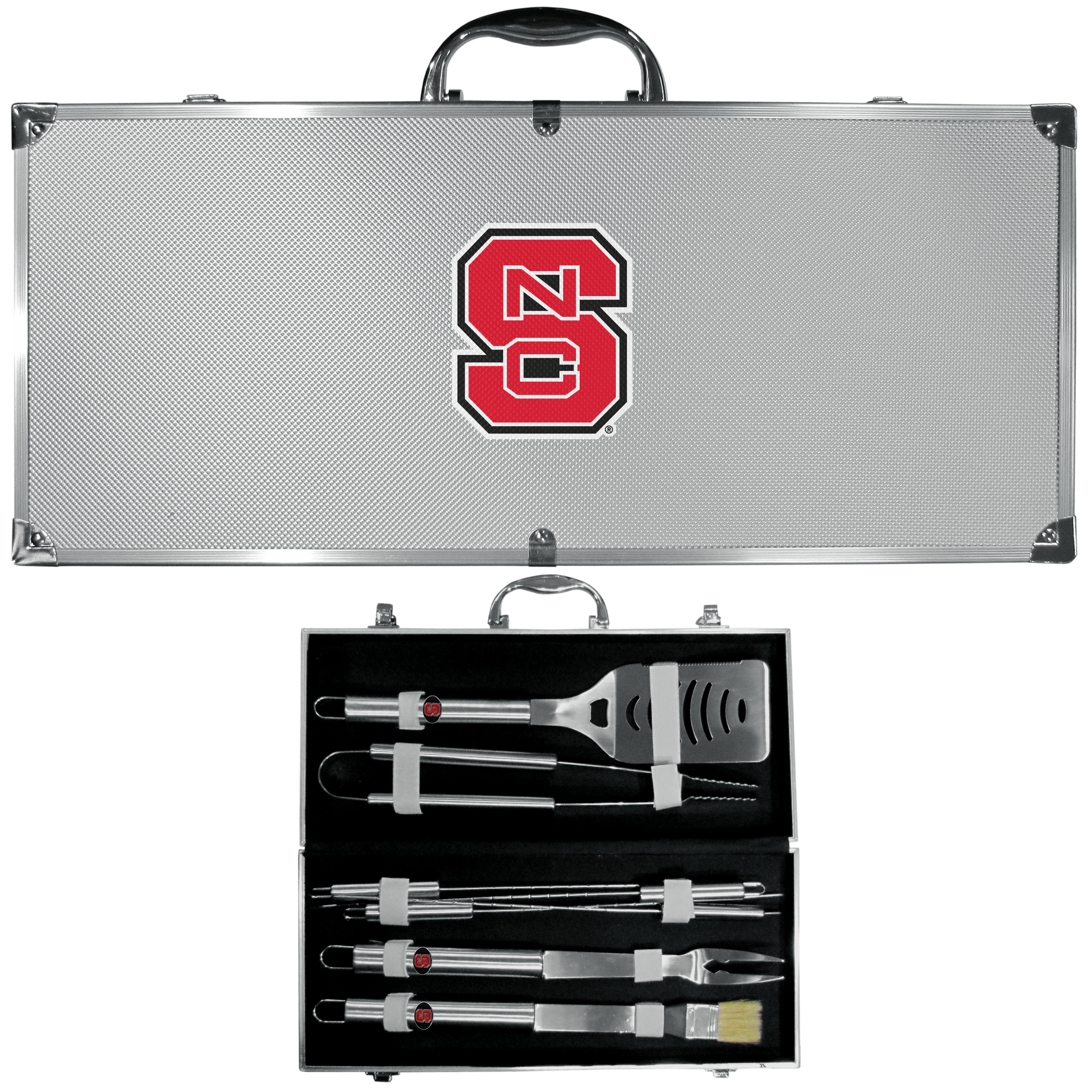 N. Carolina St. Wolfpack 8 pc Stainless Steel BBQ Set w/Metal Case