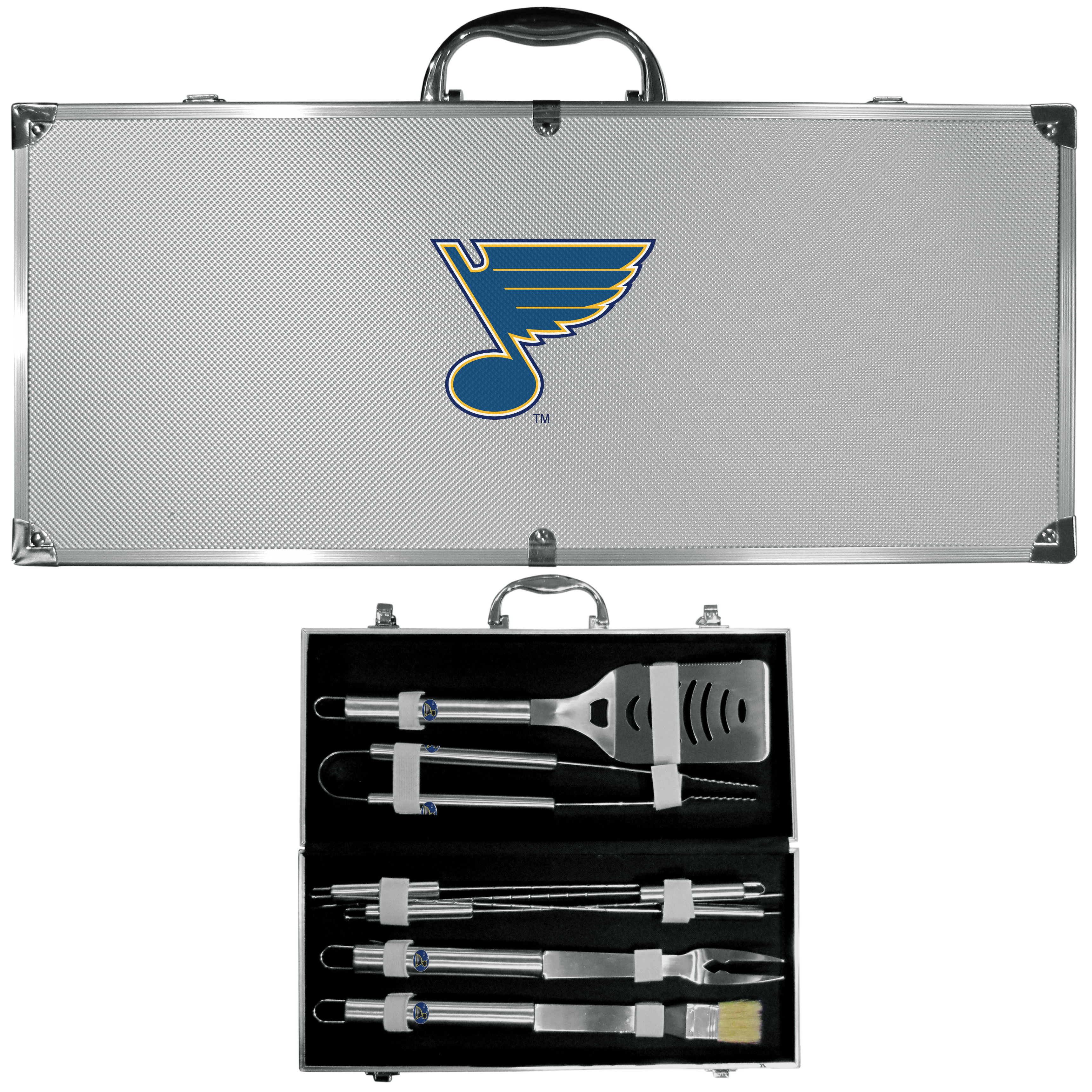 St. Louis Blues® 8 pc Stainless Steel BBQ Set w/Metal Case