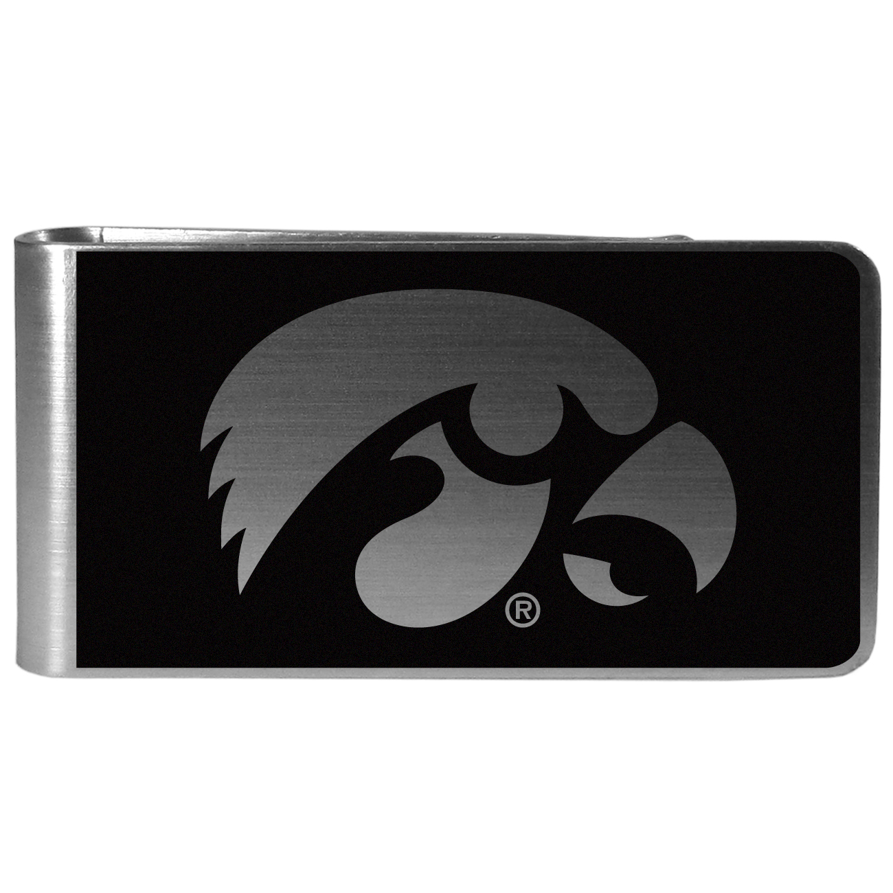 Our monochromatic steel money clips have a classic style and superior quality. The strong, steel clip has a black overlay of the Iowa Hawkeyes logo over the brushed metal finish creating a stylish men's fashion accessory that would make any fan proud.