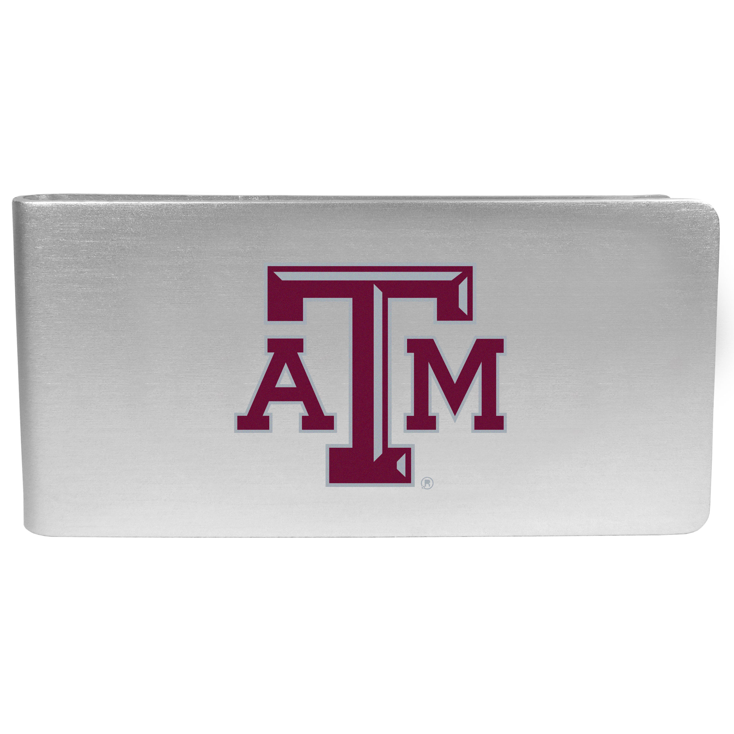 Our brushed metal money clip has classic style and functionality. The attractive clip features the Texas A & M Aggies logo expertly printed on front.