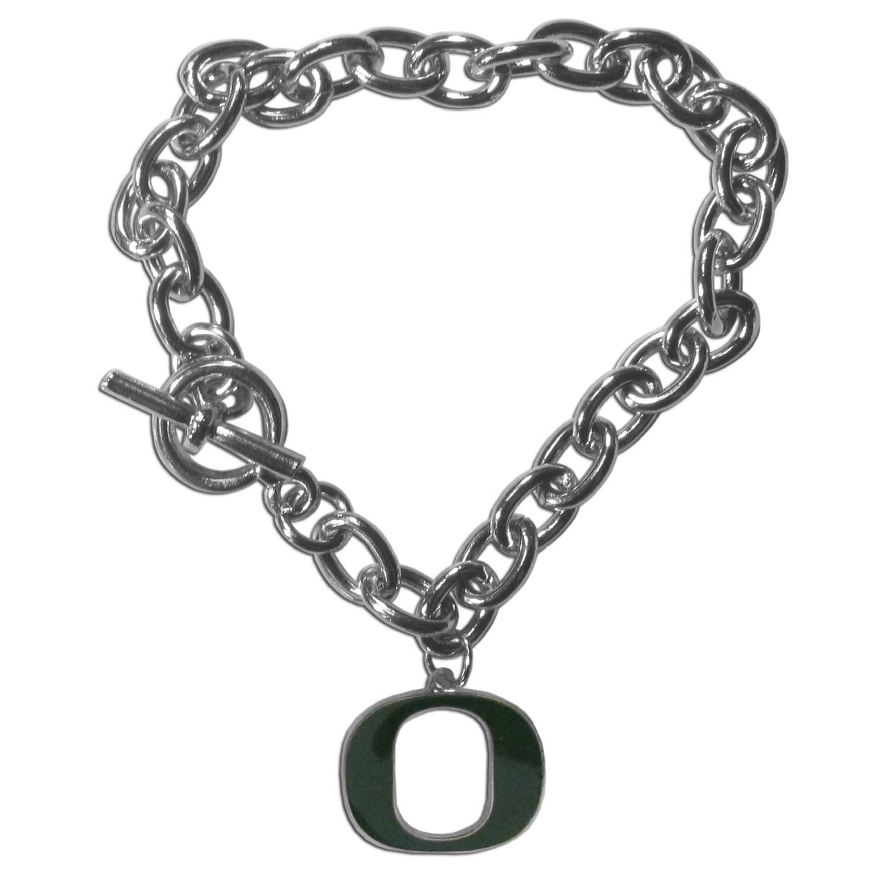 Our classic single charm bracelet is a great way to show off your team pride! The 7.5 inch large link chain features a high polish Oregon Ducks charm and features a toggle clasp which makes it super easy to take on and off.