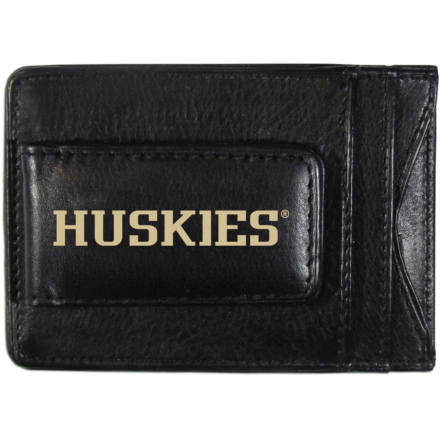This super slim leather wallet lets you have all the benefits of a money clip while keeping the organization of a wallet. On one side of this front pocket wallet there is a strong, magnetic money clip to keep your cash easily accessible and the Washington Huskies team logo on the front. The versatile men's accessory is a perfect addition to your fan apparel.