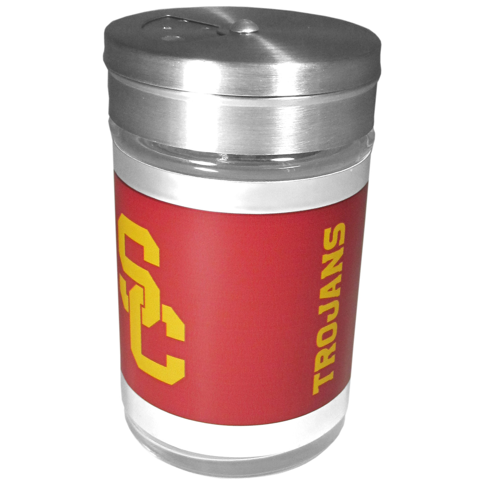 Spice it up with our USC Trojans tailgater season shakers! This compact shaker is 2 inch tall with a twist top that closes off the holes at the top making it perfect for travel preventing those messy spills. The shaker has wide holes perfect for keeping your pepper seeds or cheese toppings. The bright team graphics will make you the envy of the other fans while you are grilling up your tailgating goodies.