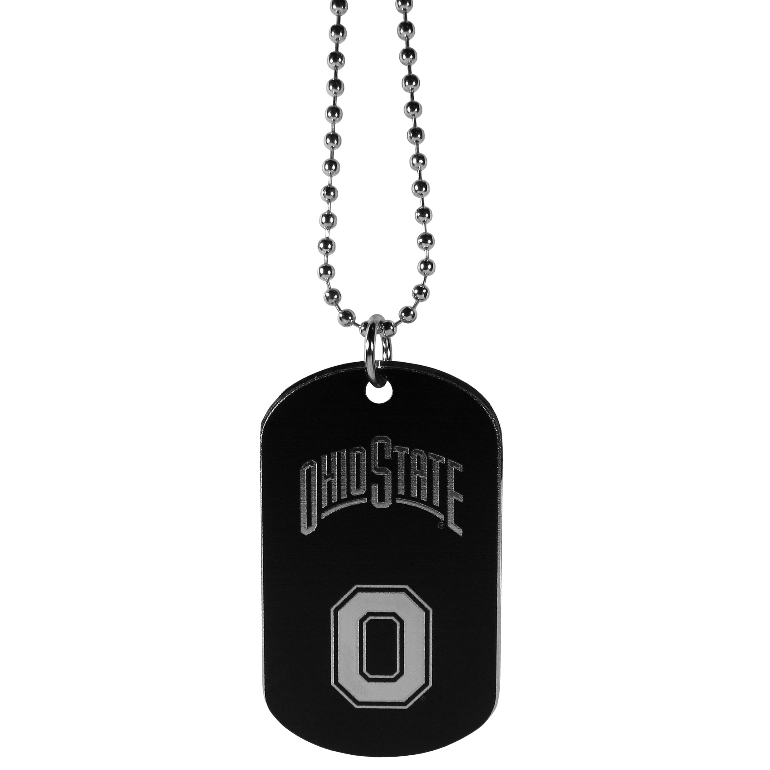 Dog tag necklaces are a fashion statement that is here to stay. The sporty version of the classic tag features a black printed over a high polish tag to create a bold and sporty look. The tag comes on a 26 inch ball chain with a ball and joint clasp. Any Ohio St. Buckeyes would be proud to wear this attractive fashion accessory.