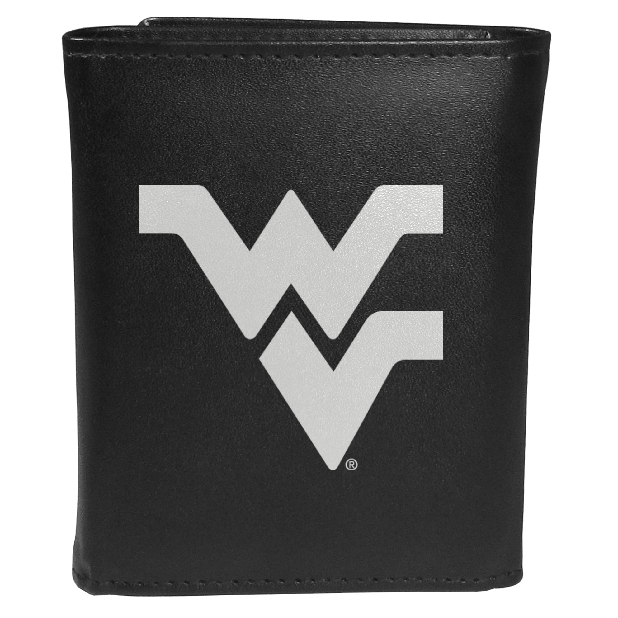 Sports fans do not have to sacrifice style with this classic tri-fold wallet that sports theW. Virginia Mountaineers extra large logo. This men's fashion accessory has a leather grain look and expert craftmanship for a quality wallet at a great price. The wallet features inner credit card slots, windowed ID slot and a large billfold pocket. The front of the wallet features an extra large printed team logo.
