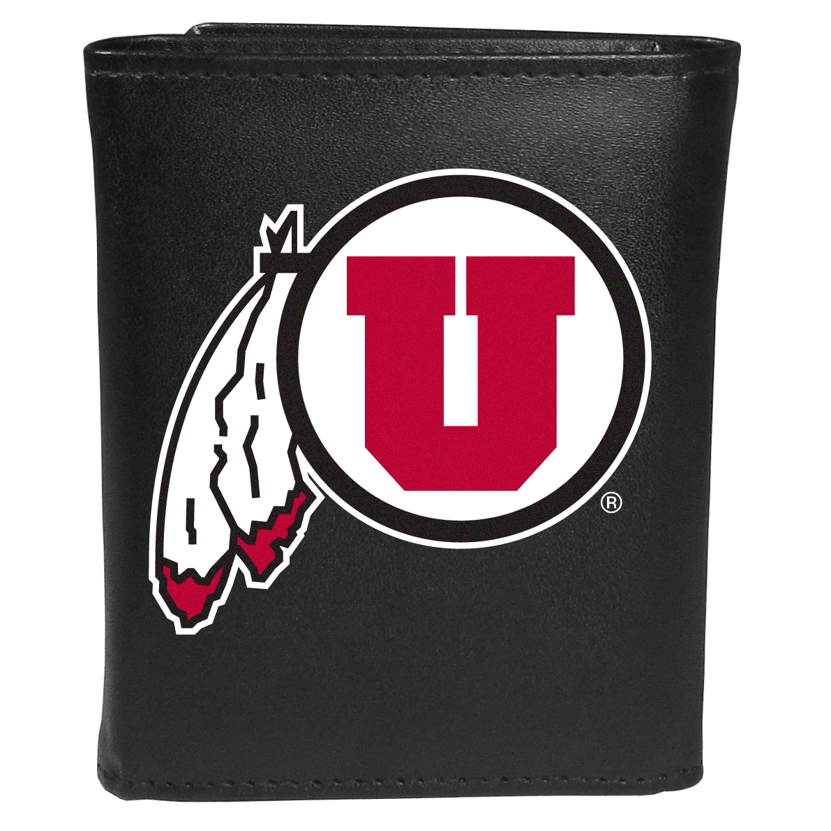 Sports fans do not have to sacrifice style with this classic tri-fold wallet that sports theUtah Utes extra large logo. This men's fashion accessory has a leather grain look and expert craftmanship for a quality wallet at a great price. The wallet features inner credit card slots, windowed ID slot and a large billfold pocket. The front of the wallet features an extra large printed team logo.