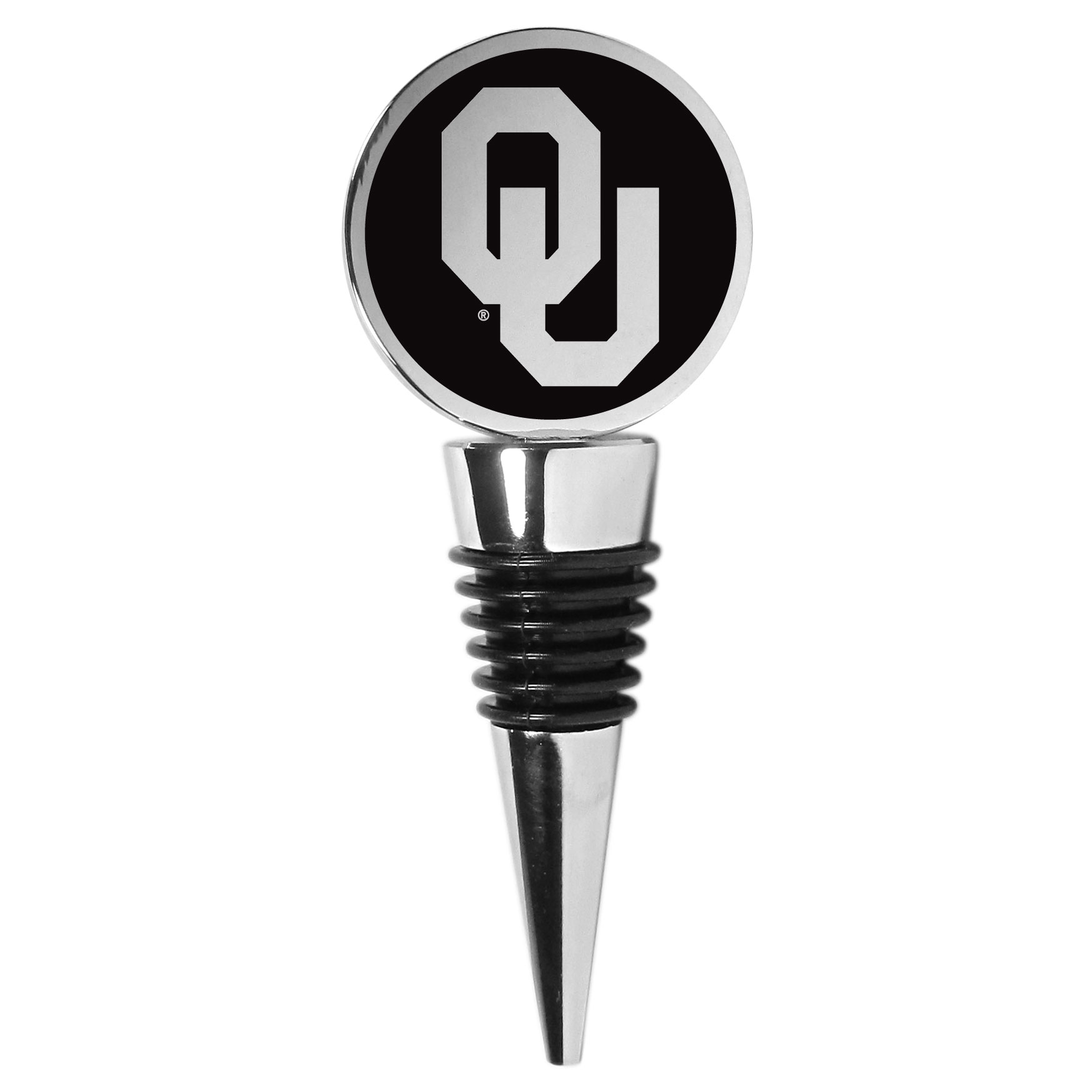 This beautiful Oklahoma Sooners wine stopper has a classy monochromatic logo on the top disc. The tapered rubber rings allow you to create a tight seal on multiple sizes of wine bottles so that you are able to preserve the wine for later enjoyment. This a perfect addition to a game day celebration.