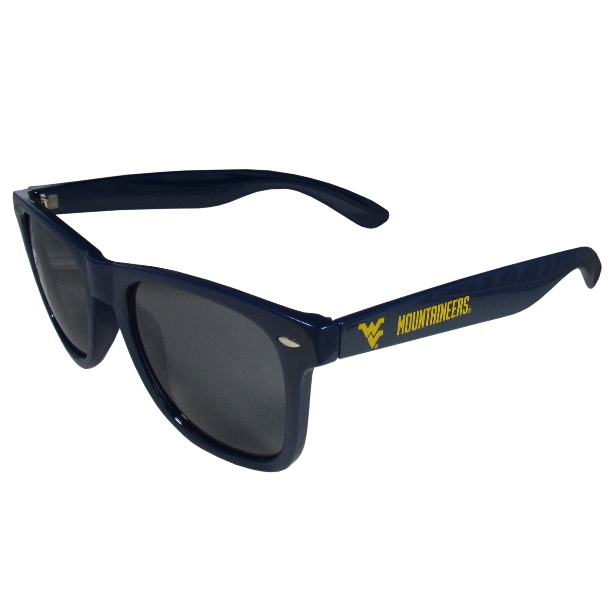 Our beachfarer sunglass feature the W. Virginia Mountaineers logo and name silk screened on the arm of these great retro glasses. 400 UVA protection.