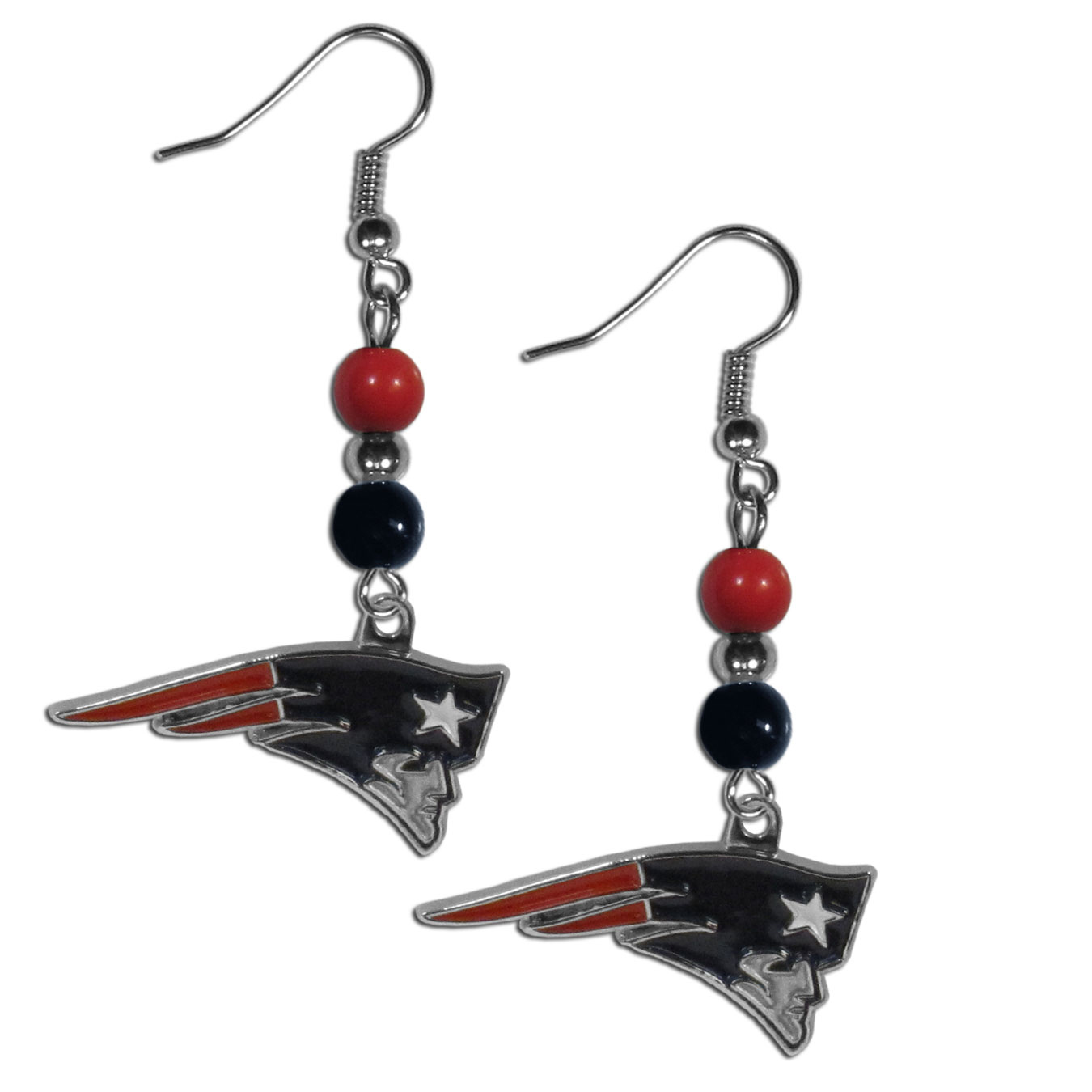 These fun and colorful New England Patriots Fan Bead earrings are casual and lightweight fashion dangle earring with eye-catching team charm. These fun dangle earrings feature a team colored beads drop down to a carved and enameled charm. These sassy yet sporty earrings make the perfect gift for any female fan. Spice up your game-day outfit with these fun colorful earrings, they are the perfect accessory and also cute enough for any day.