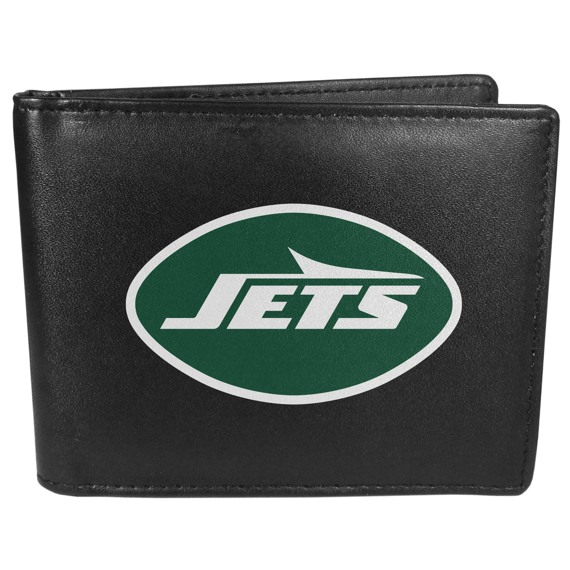 Sports fans do not have to sacrifice style with this classic bi-fold wallet that sports the New York Jets extra large logo. This men's fashion accessory has a leather grain look and expert craftmanship for a quality wallet at a great price. The wallet features inner credit card slots, windowed ID slot and a large billfold pocket. The front of the wallet features a printed team logo.