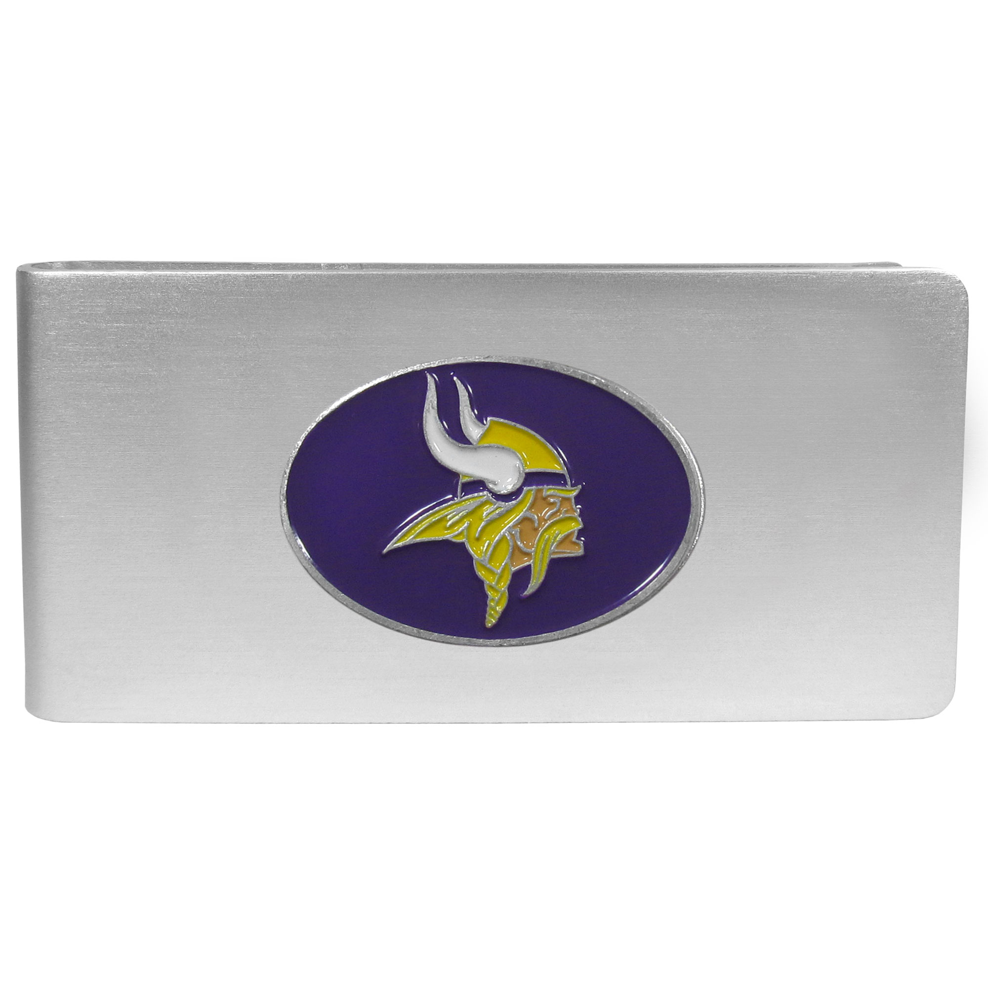 Our brushed metal money clip has classic style and functionality. The attractive clip features a metal Minnesota Vikings emblem with expertly enameled detail