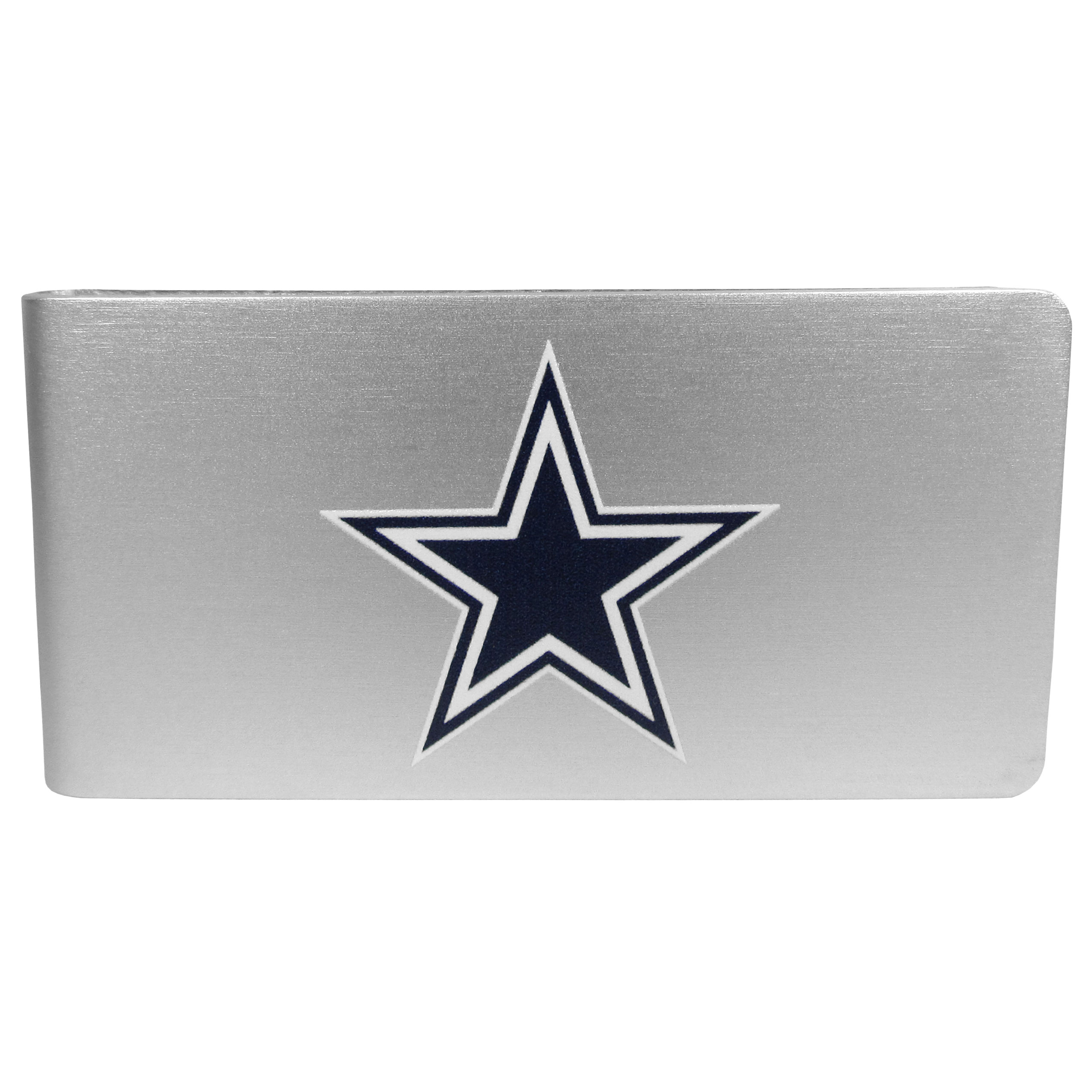Our brushed metal money clip has classic style and functionality. The attractive clip features the Dallas Cowboys logo expertly printed on front.