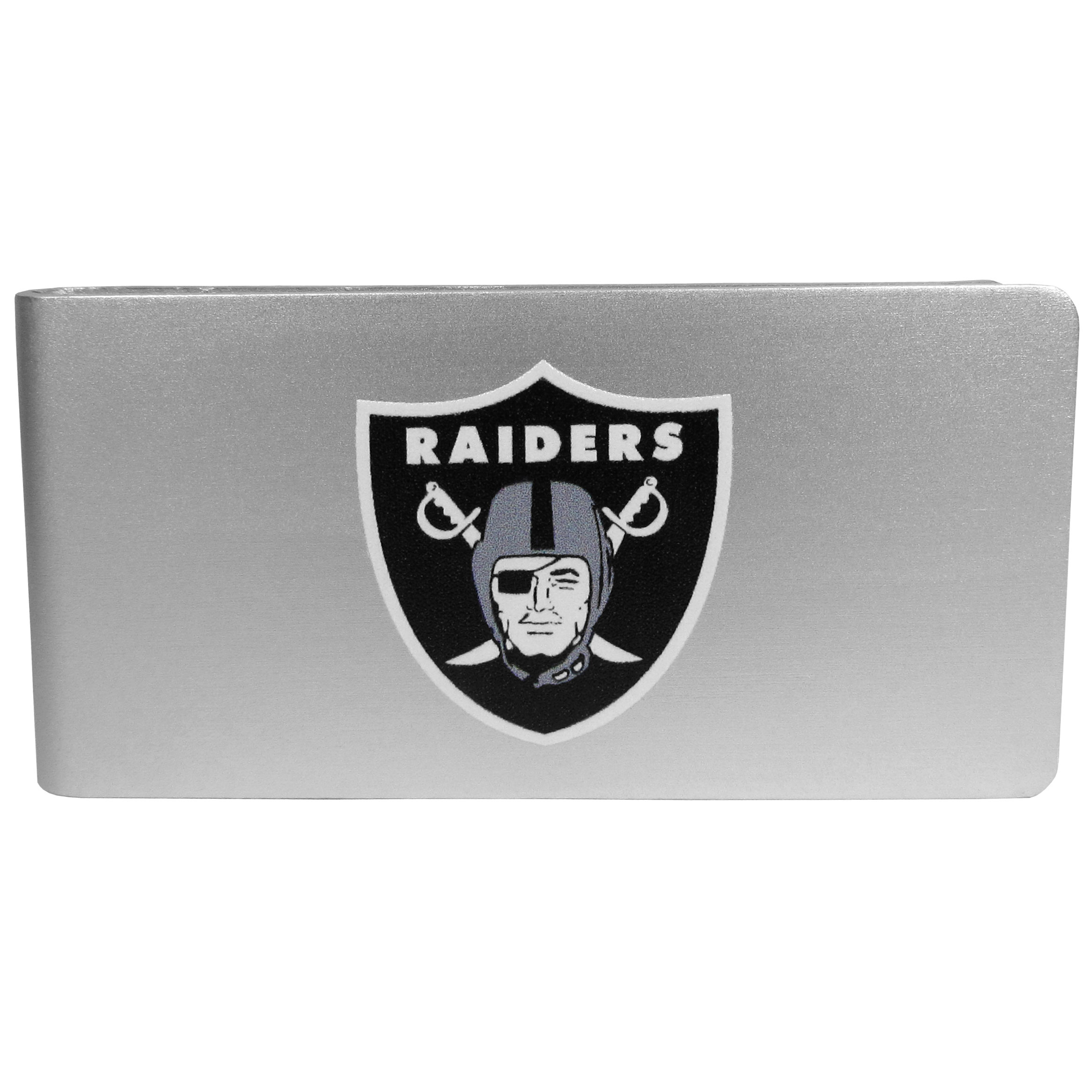 Our brushed metal money clip has classic style and functionality. The attractive clip features the Las Vegas Raiders logo expertly printed on front.