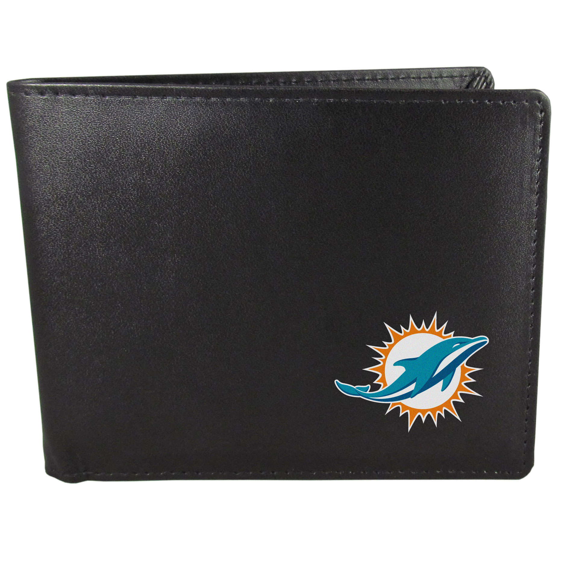 Sports fans do not have to sacrifice style with this classic bi-fold wallet that sports a Miami Dolphins emblem. This men's fashion accessory has a leather grain look and expert craftmanship for a quality wallet at a great price. The wallet features inner credit card slots, windowed ID slot and a large billfold pocket. The front of the wallet features a printed team logo.