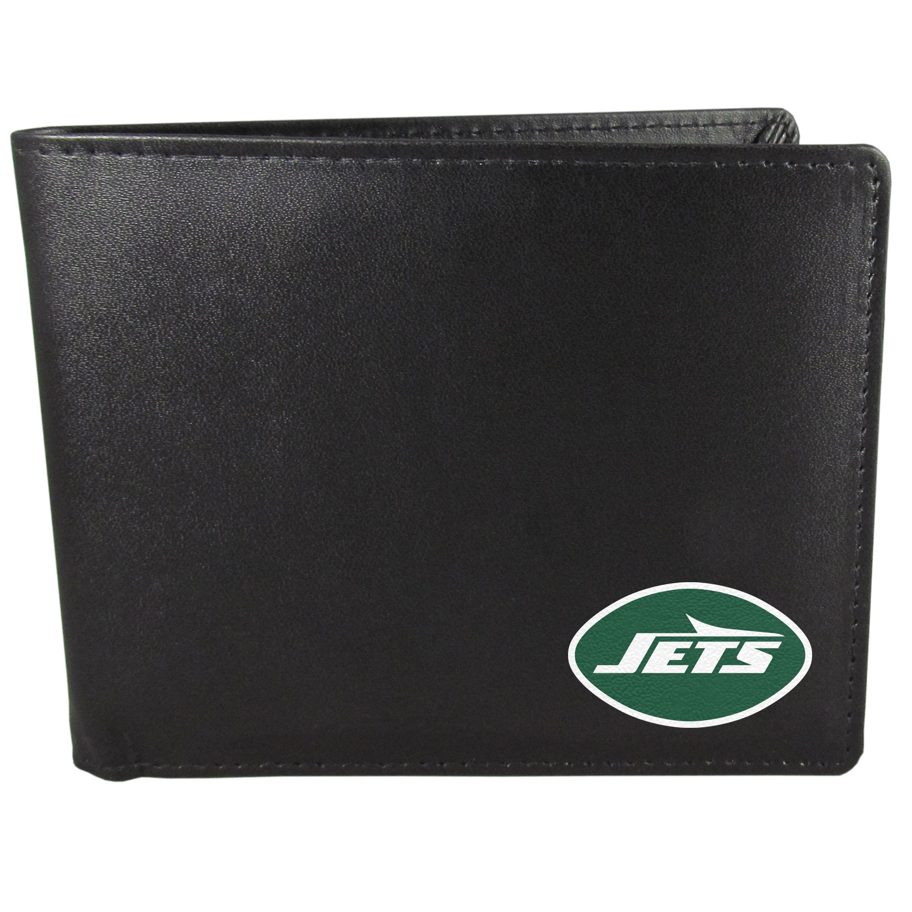 Sports fans do not have to sacrifice style with this classic bi-fold wallet that sports a New York Jets emblem. This men's fashion accessory has a leather grain look and expert craftmanship for a quality wallet at a great price. The wallet features inner credit card slots, windowed ID slot and a large billfold pocket. The front of the wallet features a printed team logo.