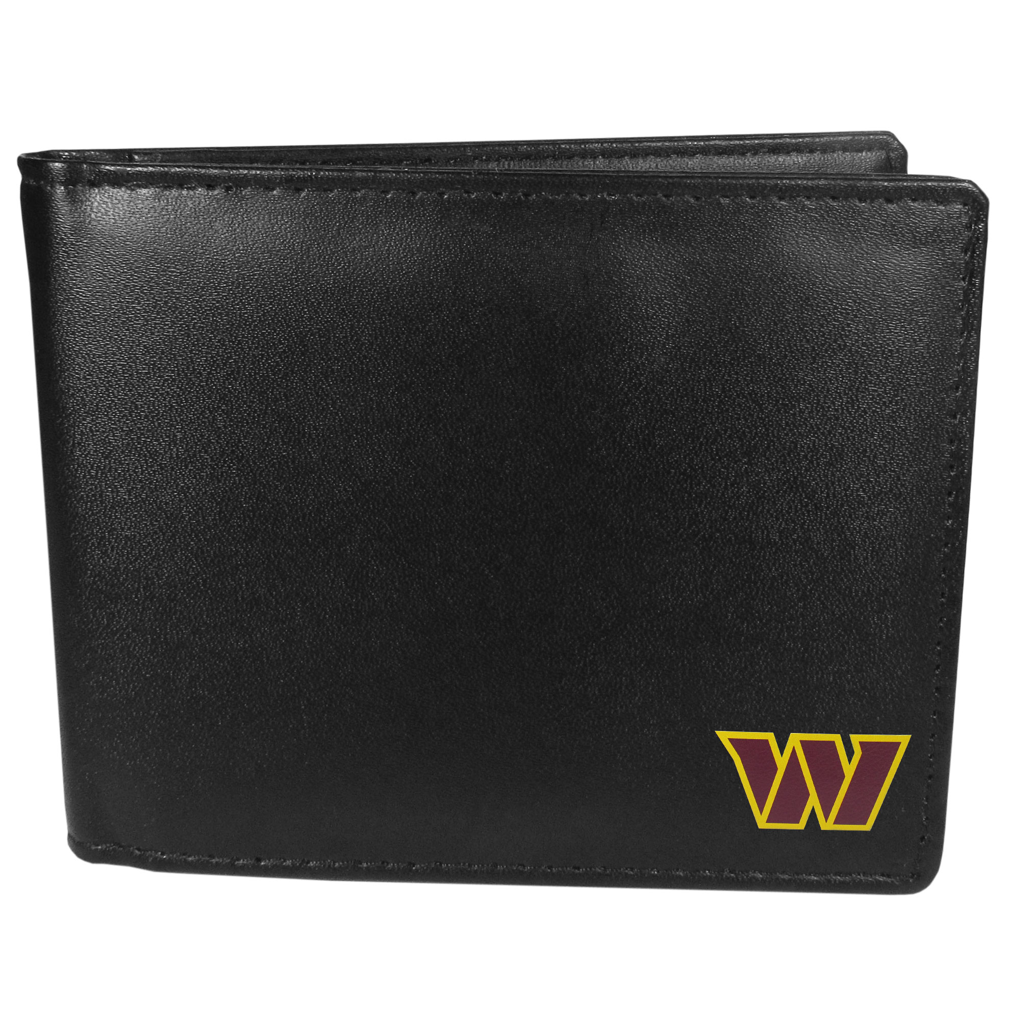 Sports fans do not have to sacrifice style with this classic bi-fold wallet that sports a Washington Commanders emblem. This men's fashion accessory has a leather grain look and expert craftmanship for a quality wallet at a great price. The wallet features inner credit card slots, windowed ID slot and a large billfold pocket. The front of the wallet features a printed team logo.