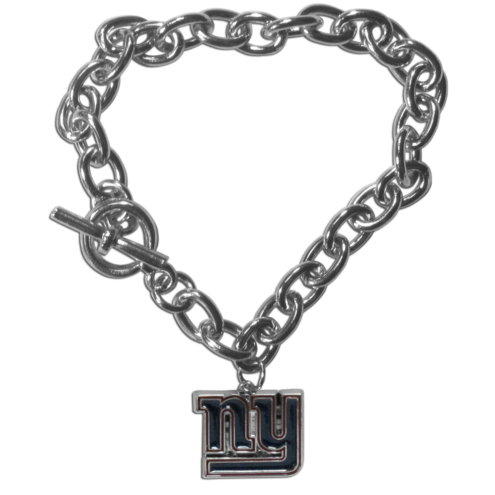 Our classic single charm bracelet is a great way to show off your team pride! The 7.5 inch large link chain features a high polish New York Giants charm and features a toggle clasp which makes it super easy to take on and off.