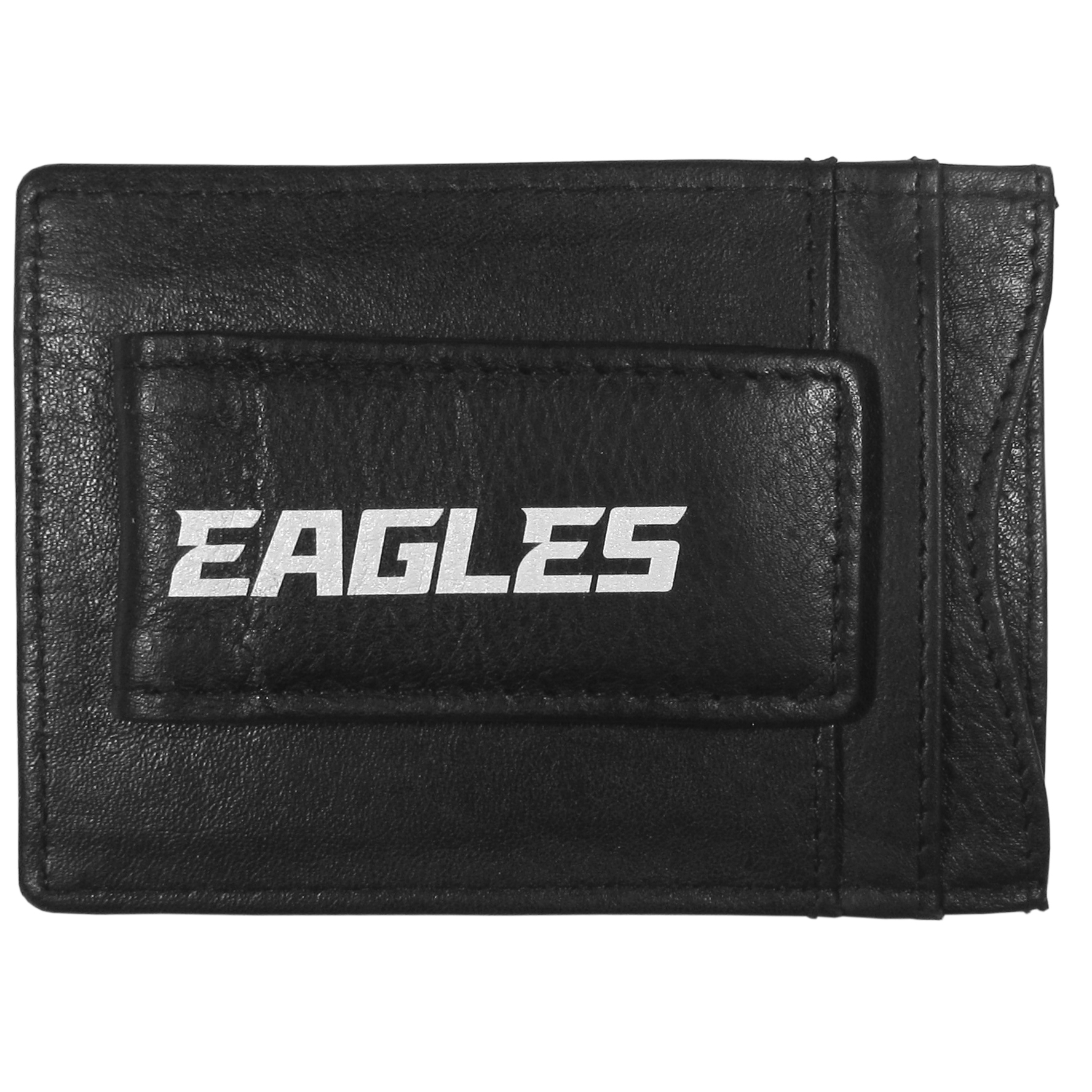 This super slim leather wallet lets you have all the benefits of a money clip while keeping the organization of a wallet. On one side of this front pocket wallet there is a strong, magnetic money clip to keep your cash easily accessible and the Philadelphia Eagles team logo on the front. The versatile men's accessory is a perfect addition to your fan apparel.