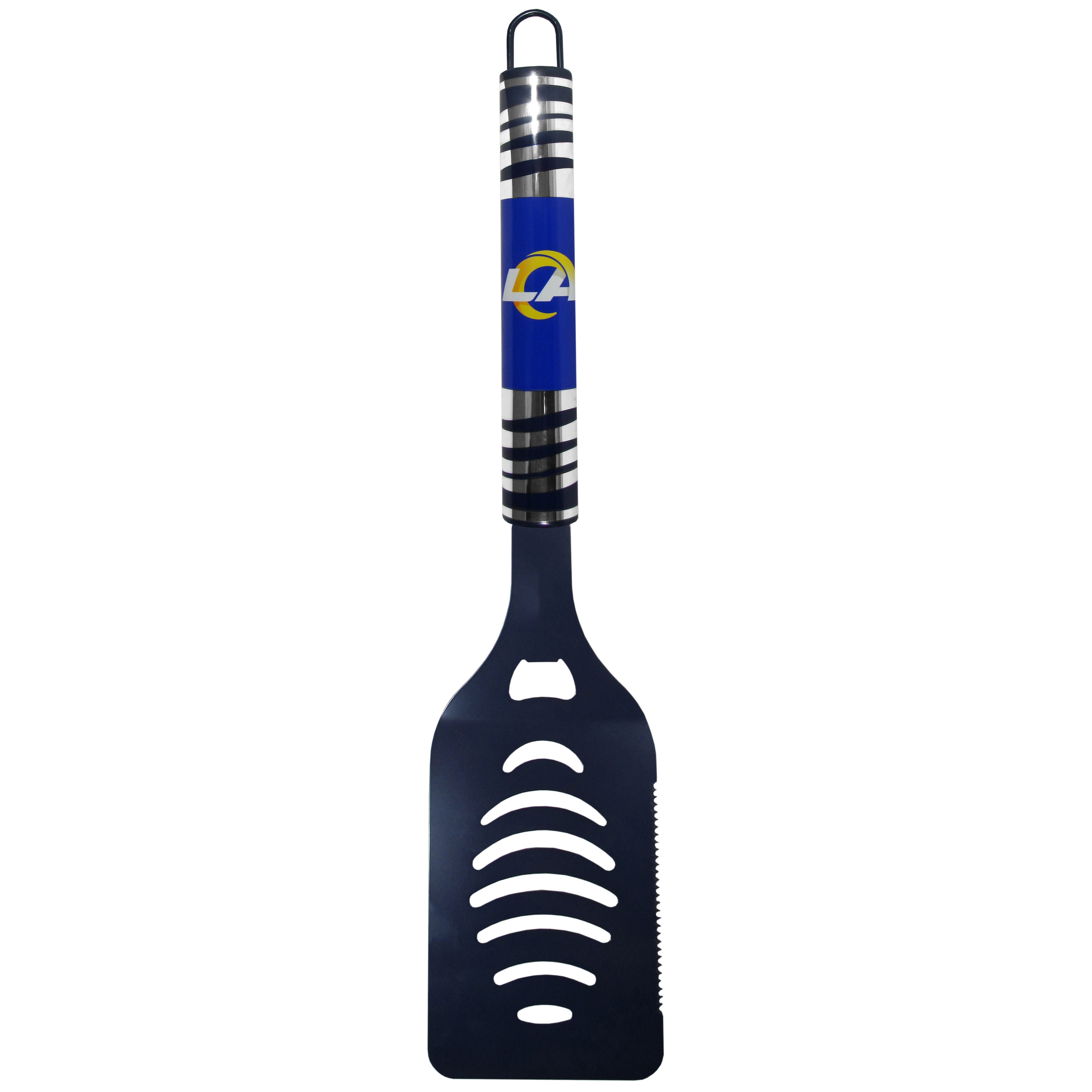 Our tailgater spatula really catches your eye with flashy chrome accents and vivid Los Angeles Rams digital graphics on a team color spatula. The iron spatula is a tough, heavy-duty tool that will last through years of tailgating fun. The spatula features a bottle opener and sharp serrated edge.