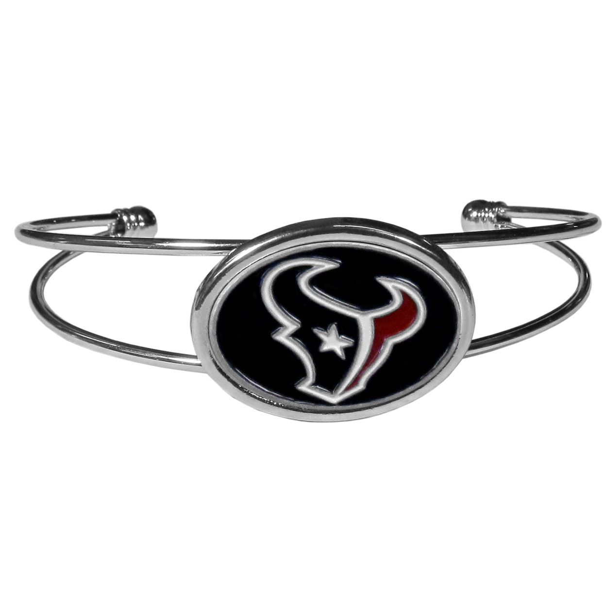 These comfortable and fashionable double-bar cuff bracelets feature a 1 inch metal Houston Texans inset logo with enameled detail.