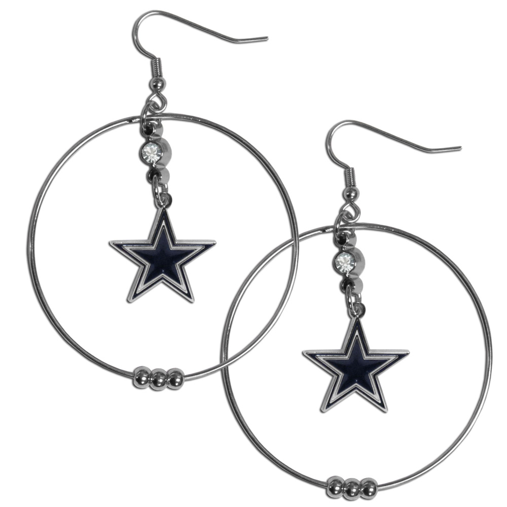 These trend-setting Dallas Cowboys 2 inch Hoop earrings are casual and lightweight large hoops with eye catching team charm and crystal accent. These trendy earrings feature a 2 inch hoop with a floating rhinestone and team charm with carved and enameled details. Sporty meets chic with these sassy earrings that would make the perfect gift for any female fan. The perfect game-day accessory and also fun for any day.