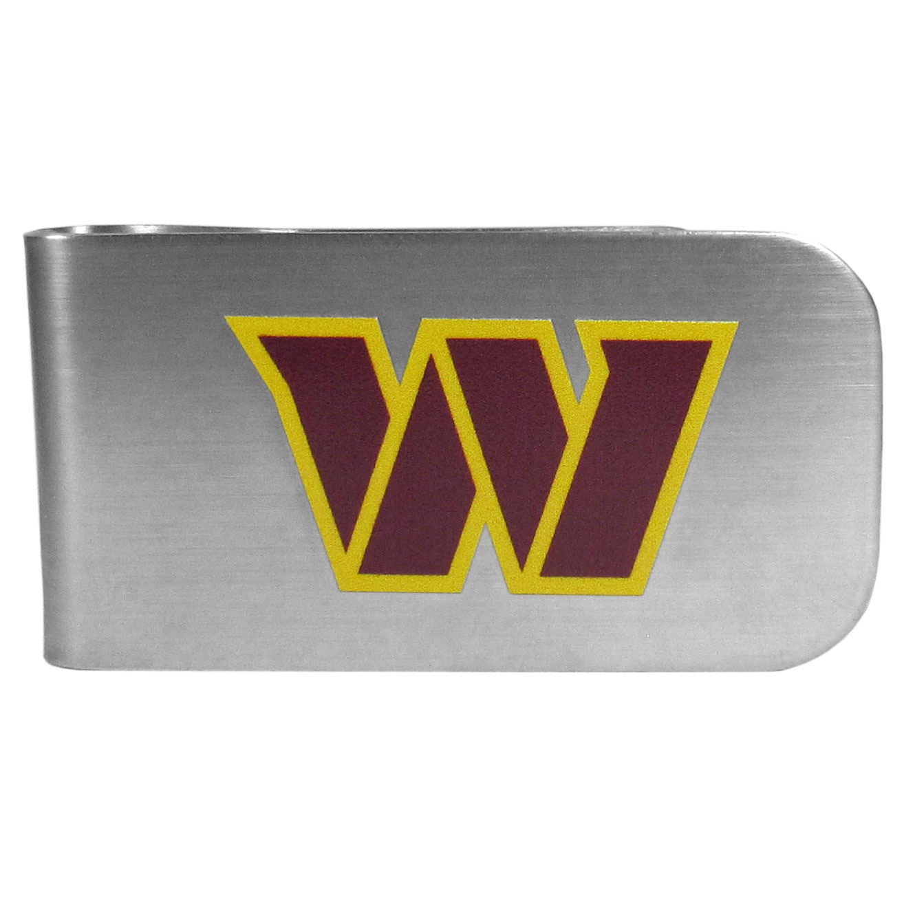 This unique money clip features a classic, brushed-metal finish with a handy bottle opener feature on the back. The clip has the Washington Commanders logo expertly printed on the front of the clip.