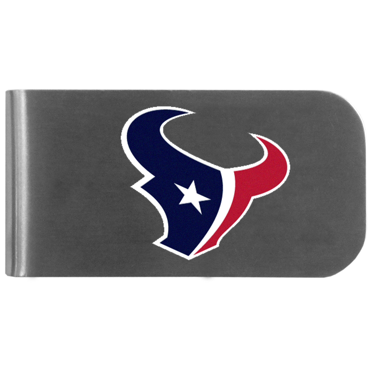 This unique money clip features a classic, brushed-metal finish with a handy bottle opener feature on the back. The clip has the Houston Texans logo expertly printed on the front of the clip.