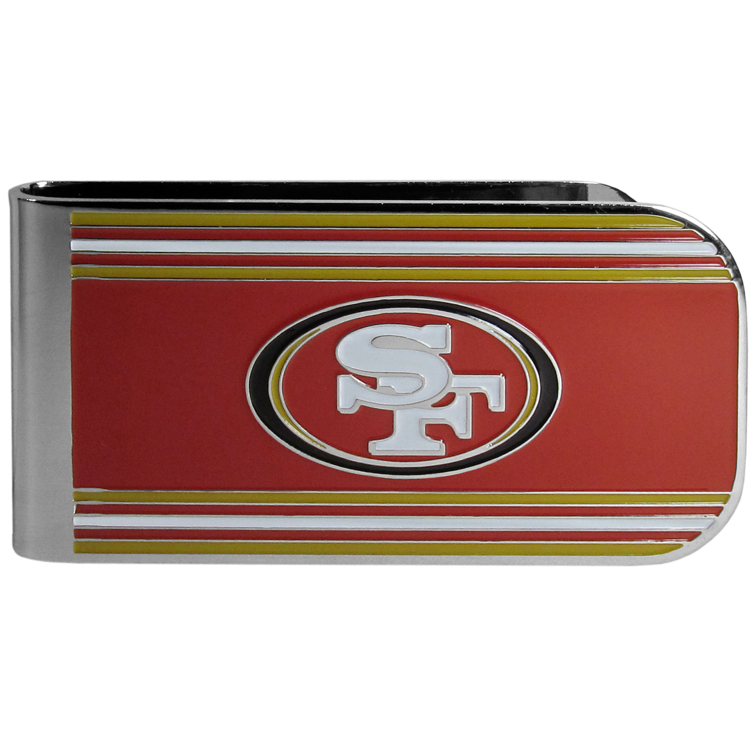 Our MVP money clip is made of high quality steel with a chrome overlay and enameled team colors and logo. The exceptional craftmanship on this piece makes it a men's fashion accessory that any fan would be proud to own. The cast detail in the San Francisco 49ers logo is perfectly detailed. The clip features an inner spring to hold your cash and cards securely in place.