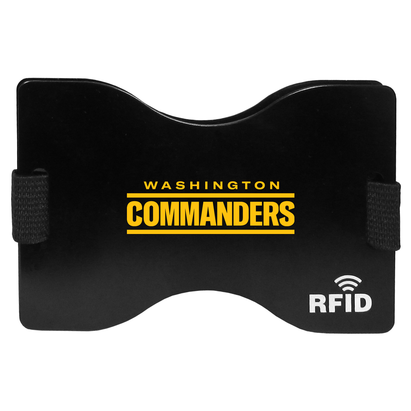 Our RFID blocking wallet and moneyclip is designed to help protect you from falling victim to a particular brand of electronic pickpocketing call RFID skimming. RFID skimming allows a criminal to scan your cards with chips and read your personal information. This attractive Washington Commanders wallet protects against this threat while also meeting all of your slim wallet needs. Store your cards in between the expandable RFID plates and store you cash in the handy outer money clip.