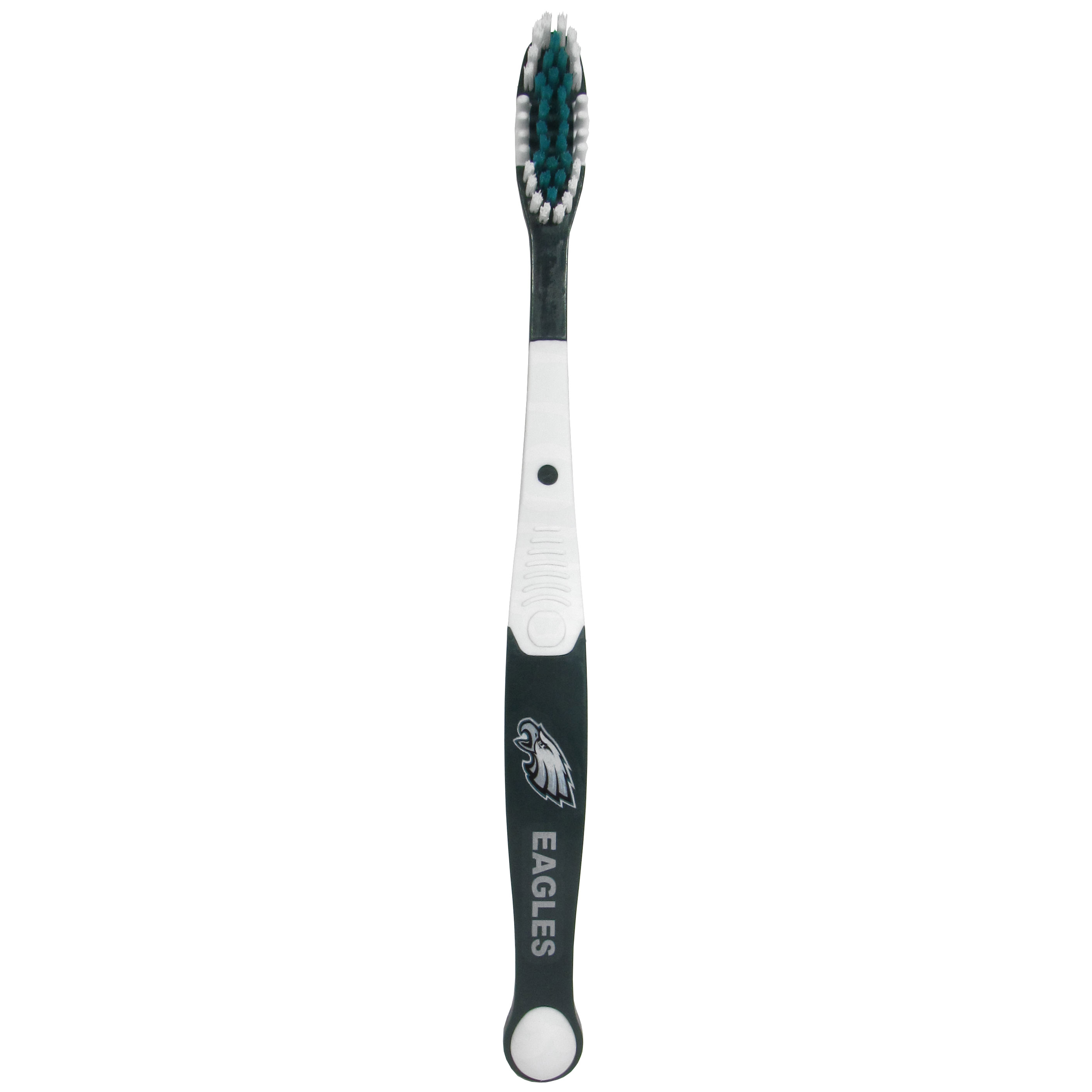 Why have a boring old toothbrush when you can have the MVP of toothbrushes! This cool Philadelphia Eagles toothbrush features crisp team graphics on a team colored toothbrush. This is no simple novelty item though, it is a high-quality hygiene device with soft bristles for a gentle clean and rubber gum massagers on the sides of the bristles.