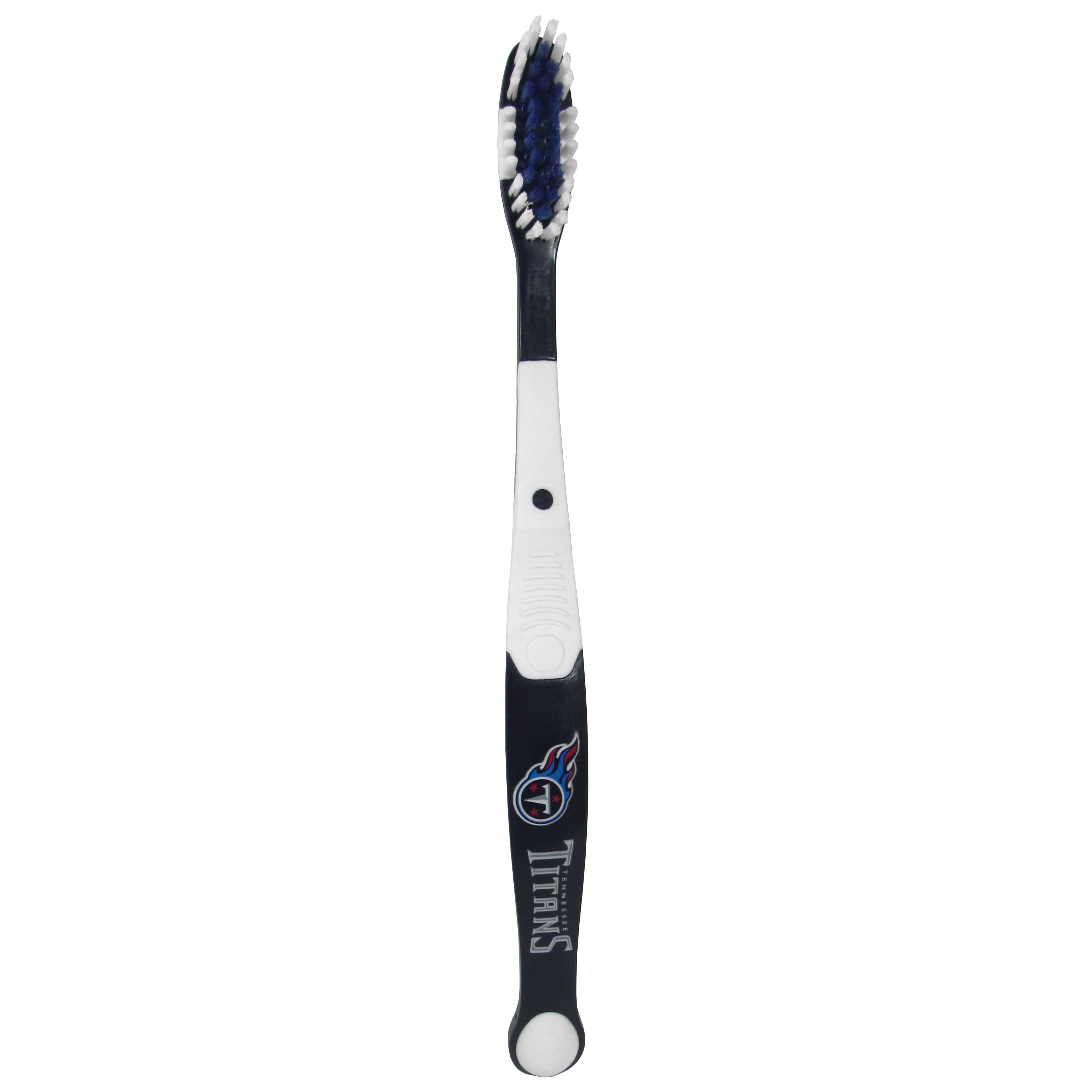 Why have a boring old toothbrush when you can have the MVP of toothbrushes! This cool Tennessee Titans toothbrush features crisp team graphics on a team colored toothbrush. This is no simple novelty item though, it is a high-quality hygiene device with soft bristles for a gentle clean and rubber gum massagers on the sides of the bristles.