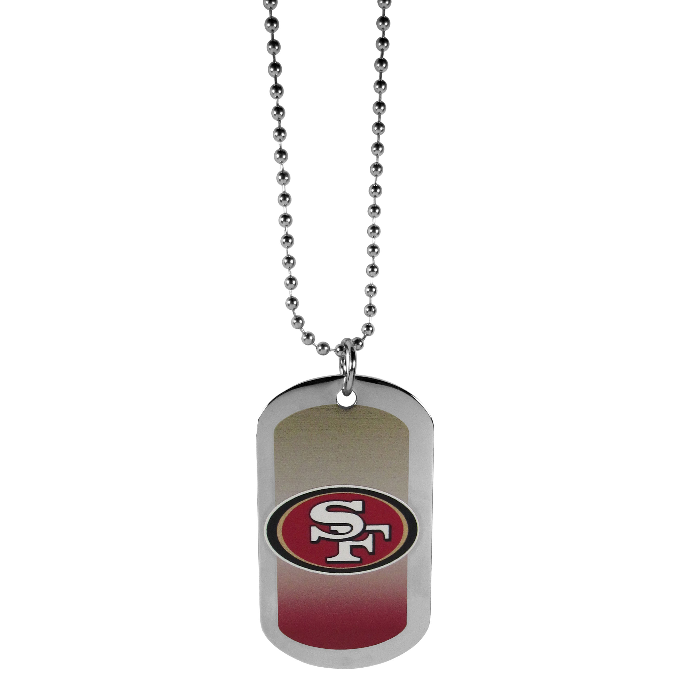 Dog tag necklaces are a fashion statement that is here to stay. The sporty version of the classic tag features a gradient print in team colors featuring a full color team logo over a high polish tag to create a bold and sporty look. The tag comes on a 26 inch ball chain with a ball and joint clasp. Any San Francisco 49ers would be proud to wear this attractive fashion accessory.