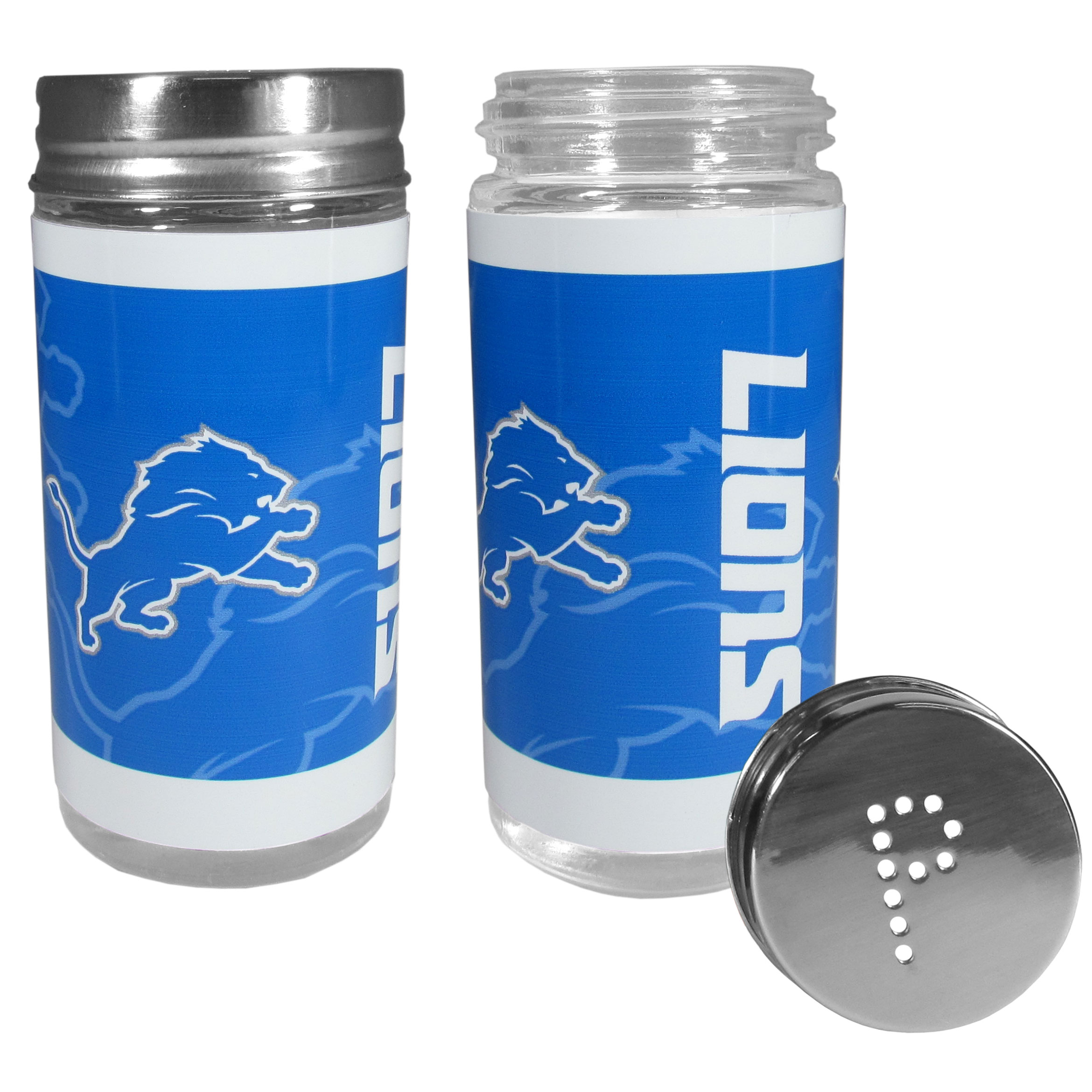 No tailgate party is complete without your Detroit Lions salt & pepper shakers featuring bright team graphics. The glass shakers are 3.75 inches tall and the screw top lids have holes that spell out P and S. These team shakers are a great grill accessory whether you are barbecuing on the patio, picnicing or having a game day party.