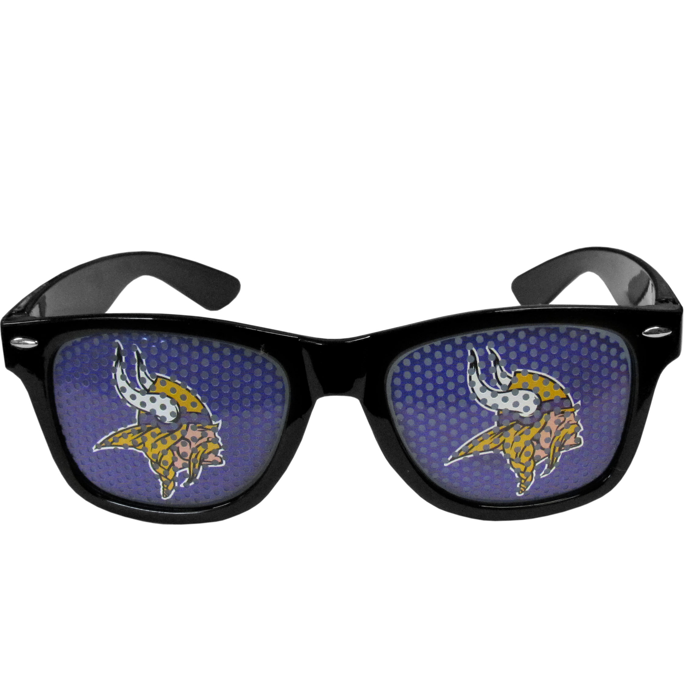 Our officially licensed game day shades are the perfect accessory for the devoted Minnesota Vikings fan! The sunglasses have durable polycarbonate frames with flex hinges for comfort and damage resistance. The lenses feature brightly colored team clings that are perforated for visibility.