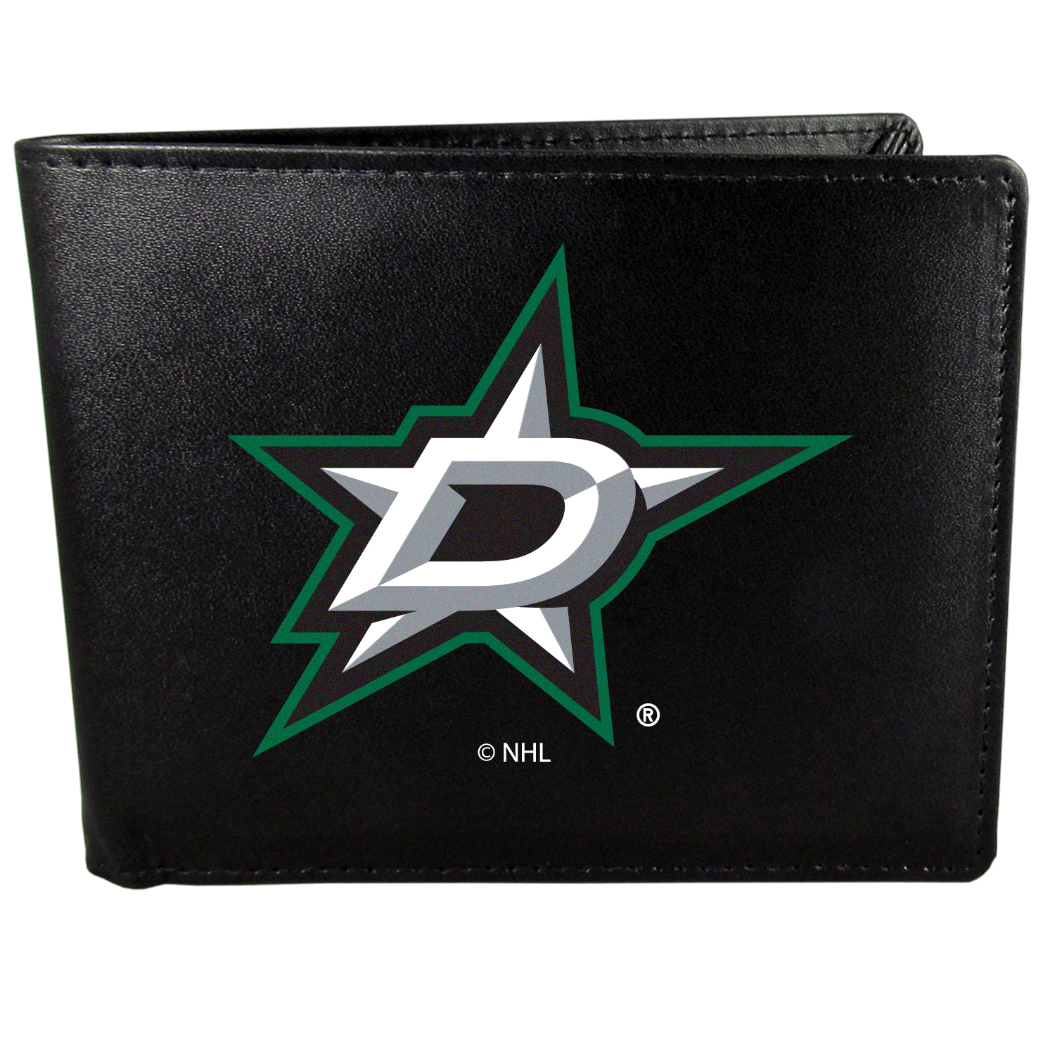 Sports fans do not have to sacrifice style with this classic bi-fold wallet that sports the Dallas Stars™ extra large logo. This men's fashion accessory has a leather grain look and expert craftmanship for a quality wallet at a great price. The wallet features inner credit card slots, windowed ID slot and a large billfold pocket. The front of the wallet features a printed team logo.