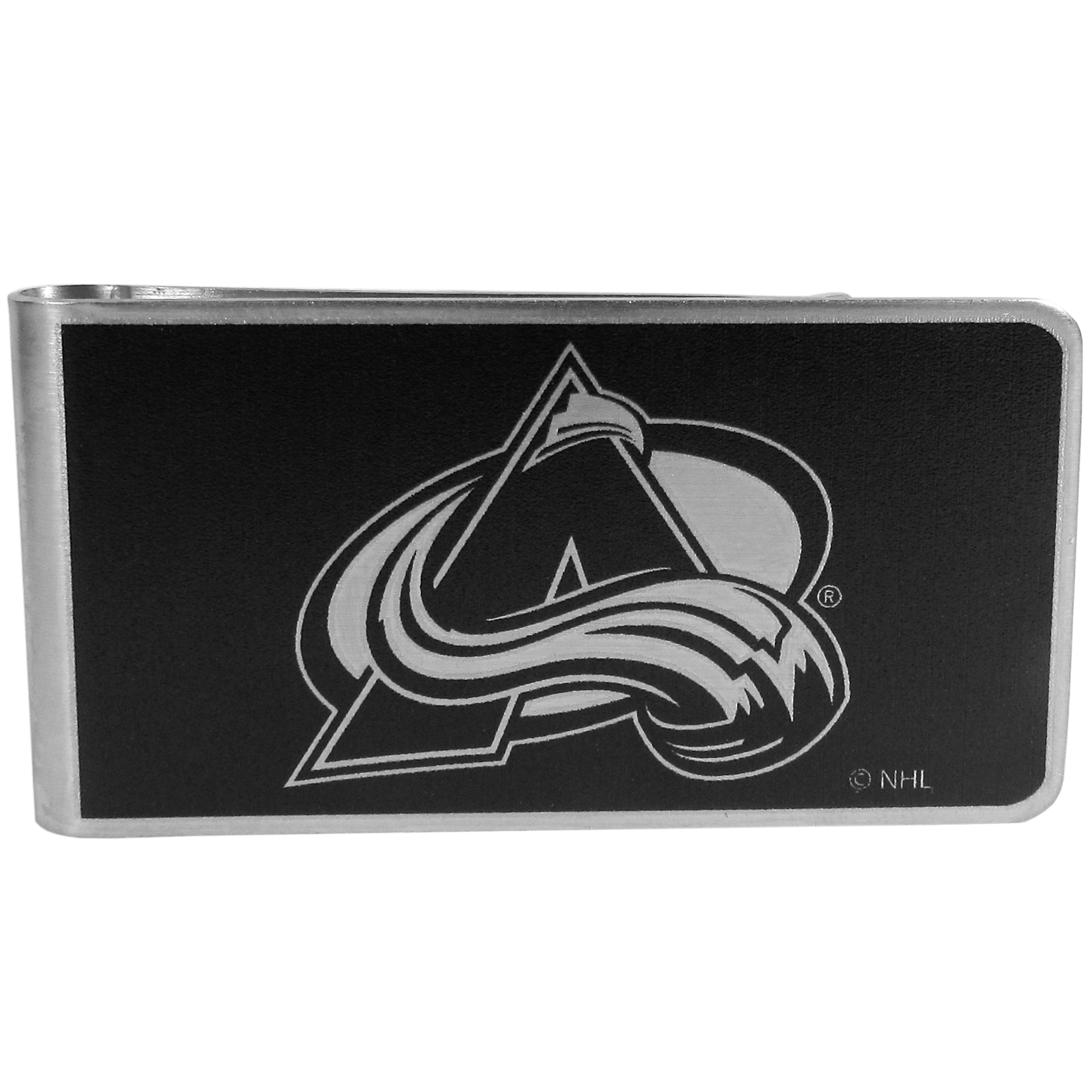 Our monochromatic steel money clips have a classic style and superior quality. The strong, steel clip has a black overlay of the Colorado Avalanche® logo over the brushed metal finish creating a stylish men's fashion accessory that would make any fan proud.