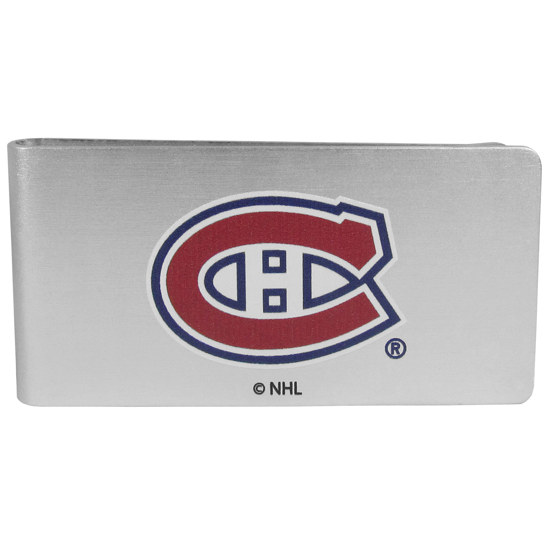Our brushed metal money clip has classic style and functionality. The attractive clip features the Montreal Canadiens® logo expertly printed on front.