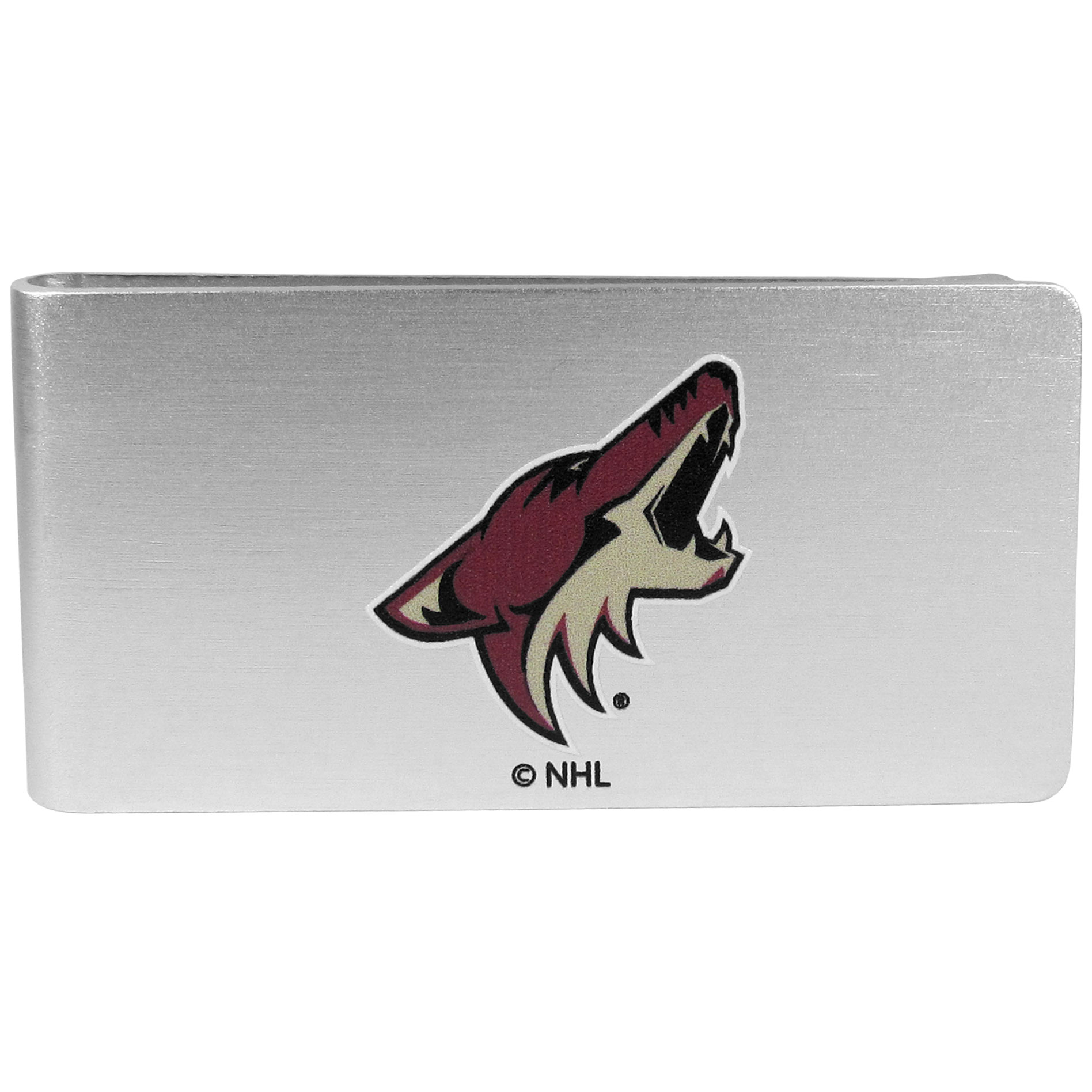 Our brushed metal money clip has classic style and functionality. The attractive clip features the Arizona Coyotes® logo expertly printed on front.