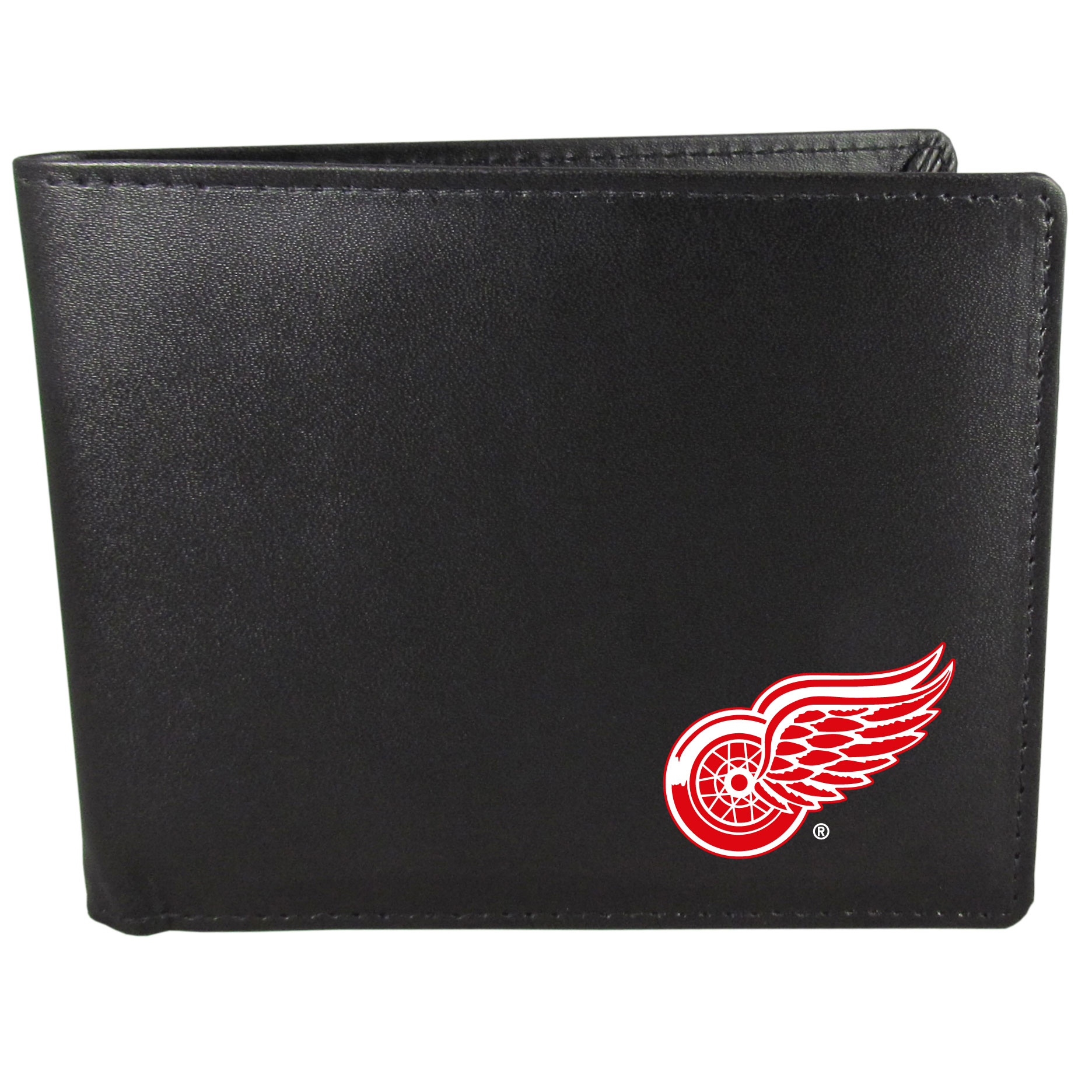 Sports fans do not have to sacrifice style with this classic bi-fold wallet that sports a Detroit Red Wings® emblem. This men's fashion accessory has a leather grain look and expert craftmanship for a quality wallet at a great price. The wallet features inner credit card slots, windowed ID slot and a large billfold pocket. The front of the wallet features a printed team logo.