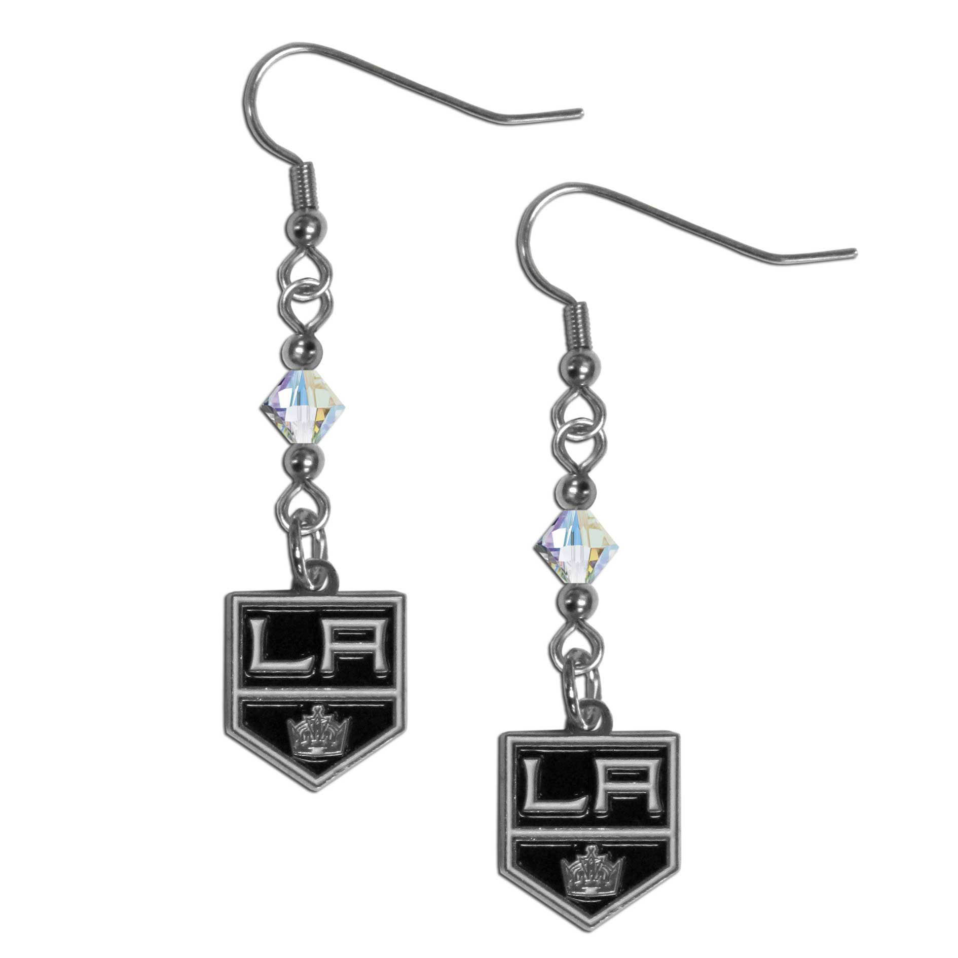 Bring on the bling with these Los Angeles Kings® Crystal Bead earrings are fun fashionable and lightweight accessory earrings with striking team charm. These trendy 1.5 inch earrings feature a crystal dropped down to a carved and enameled charm. Sporty meets glamorous with these sassy earrings that would make the perfect gift for any female fan. Bling out your game day outfit with these on fleek chic earring and they are also chic and simple enough for any day.