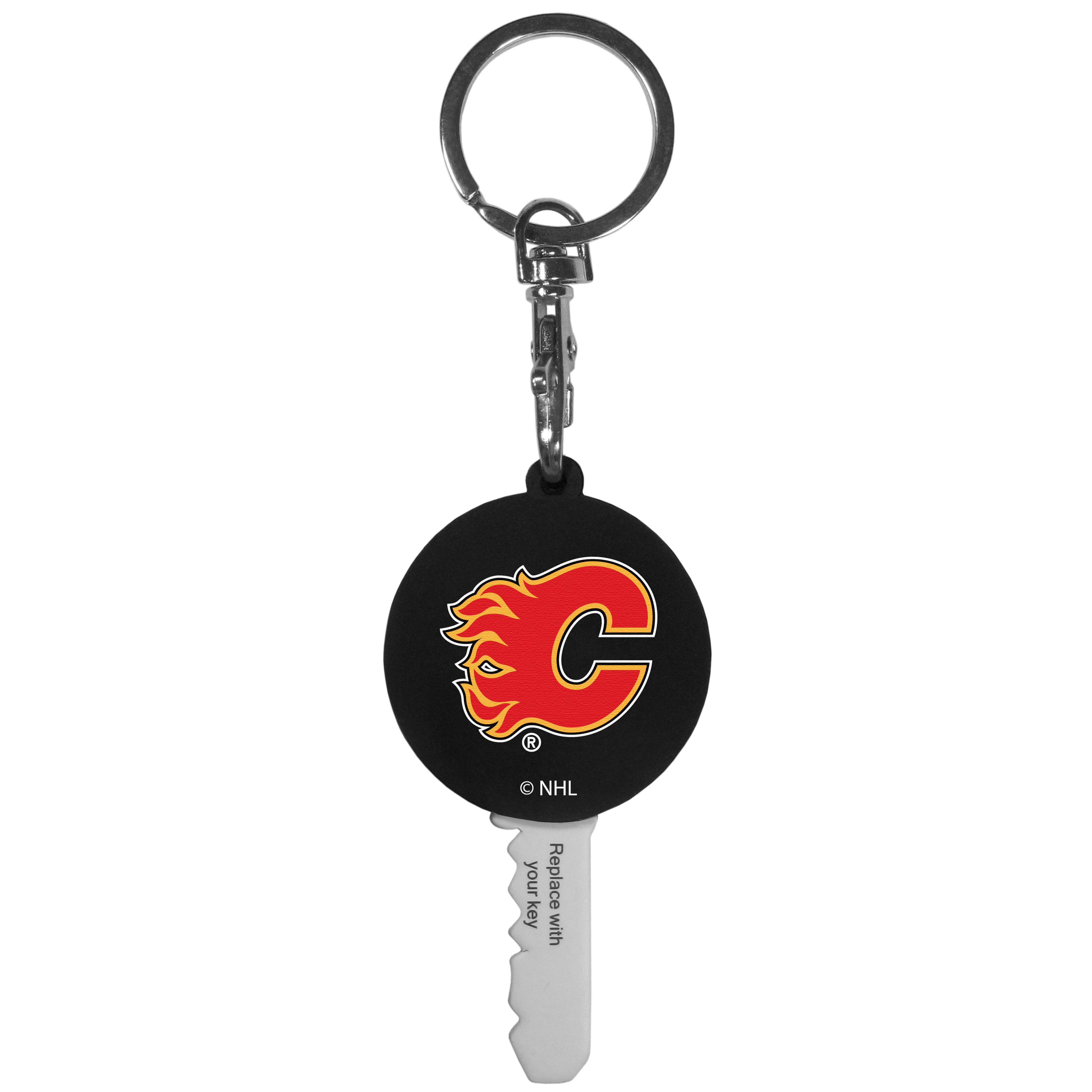 This super handy little key topper has a built in mini light that illuminates the lock so you do not have to fumble in the dark trying to open your door. You slide your house key into the top of the rubber key topper and you're ready to go. The topper features a Calgary Flames® logo on the front of the topper.