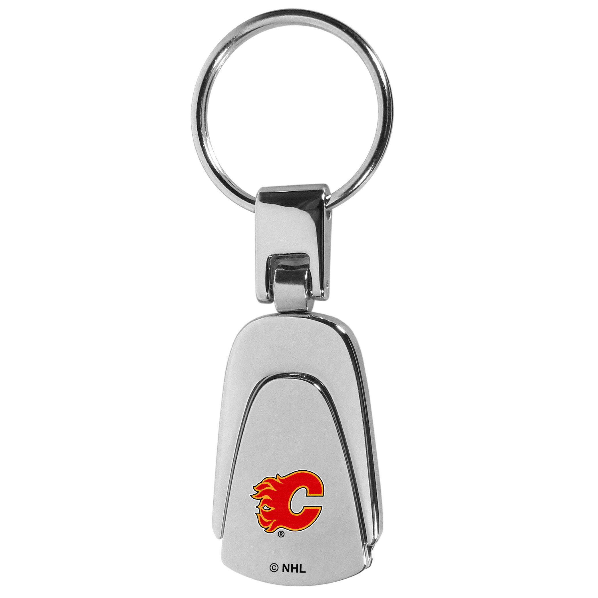 Our Calgary Flames® stainless steel, teardrop key chain is a high-quality key chain with classic style. The key chain has a high-polish finish with a full color team logo. A standard split ring for your home and auto keys.