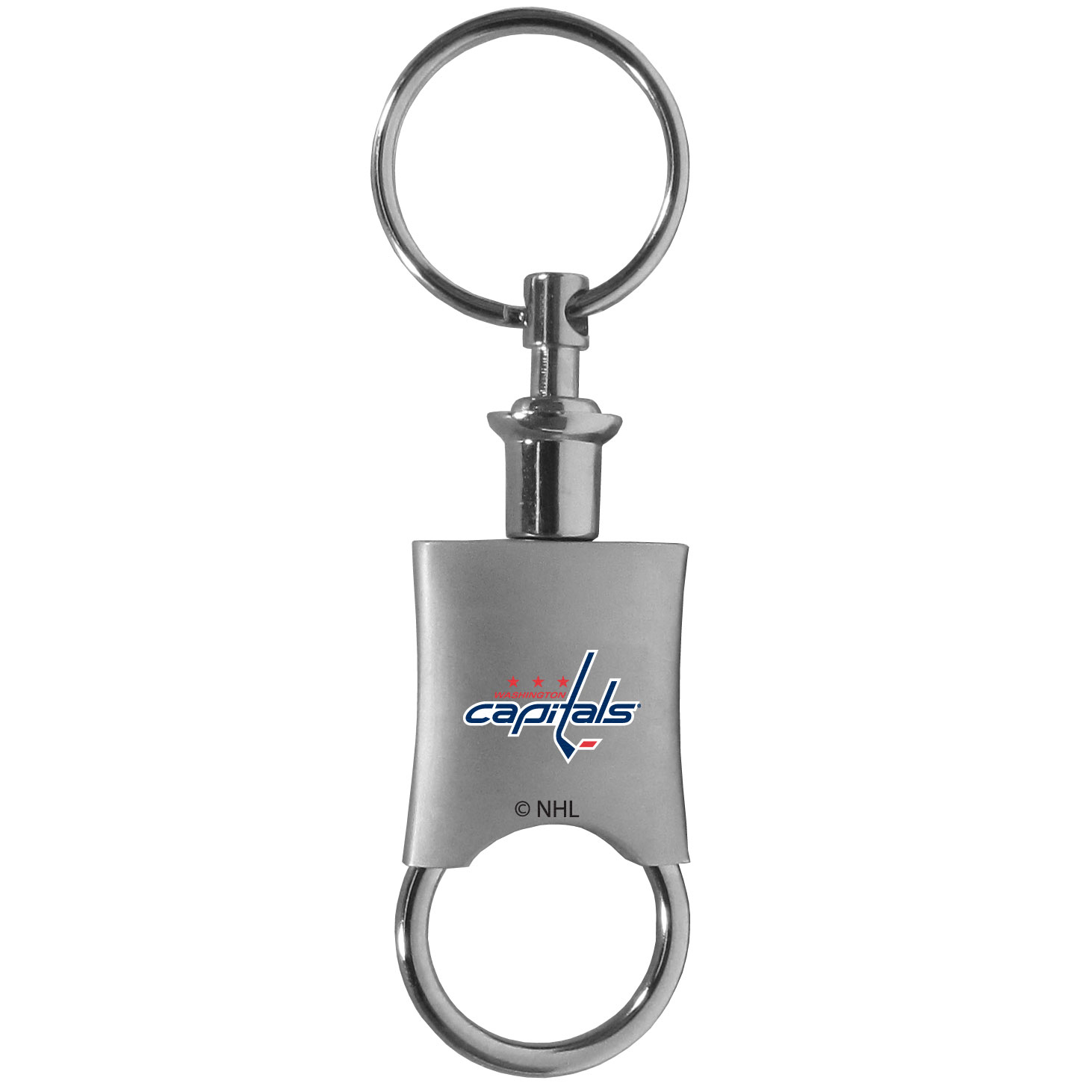 This high-quality key chain is both fashionable and functional. The key chain features to key rings and one of them detaches easily for valet use so you do not have to risk giving out all of your keys. The beautiful brushed metal finish features the Washington Capitals® logo expertly printed on front.