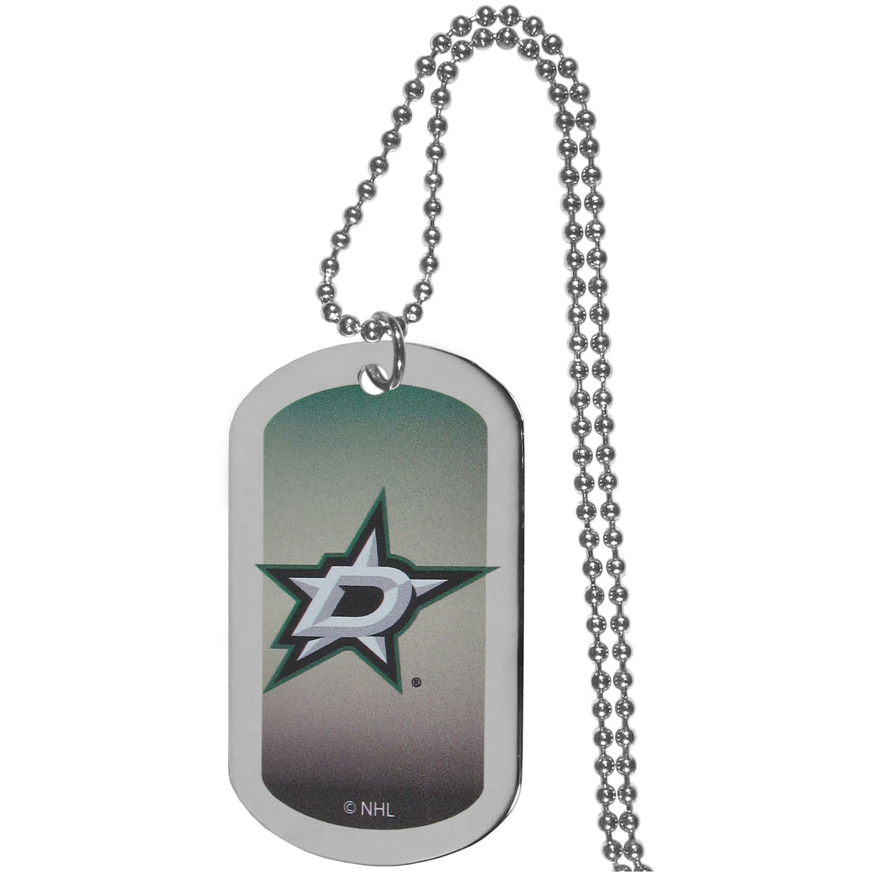 Dog tag necklaces are a fashion statement that is here to stay. The sporty version of the classic tag features a gradient print in team colors featuring a full color team logo over a high polish tag to create a bold and sporty look. The tag comes on a 26 inch ball chain with a ball and joint clasp. Any Dallas Stars™ would be proud to wear this attractive fashion accessory.