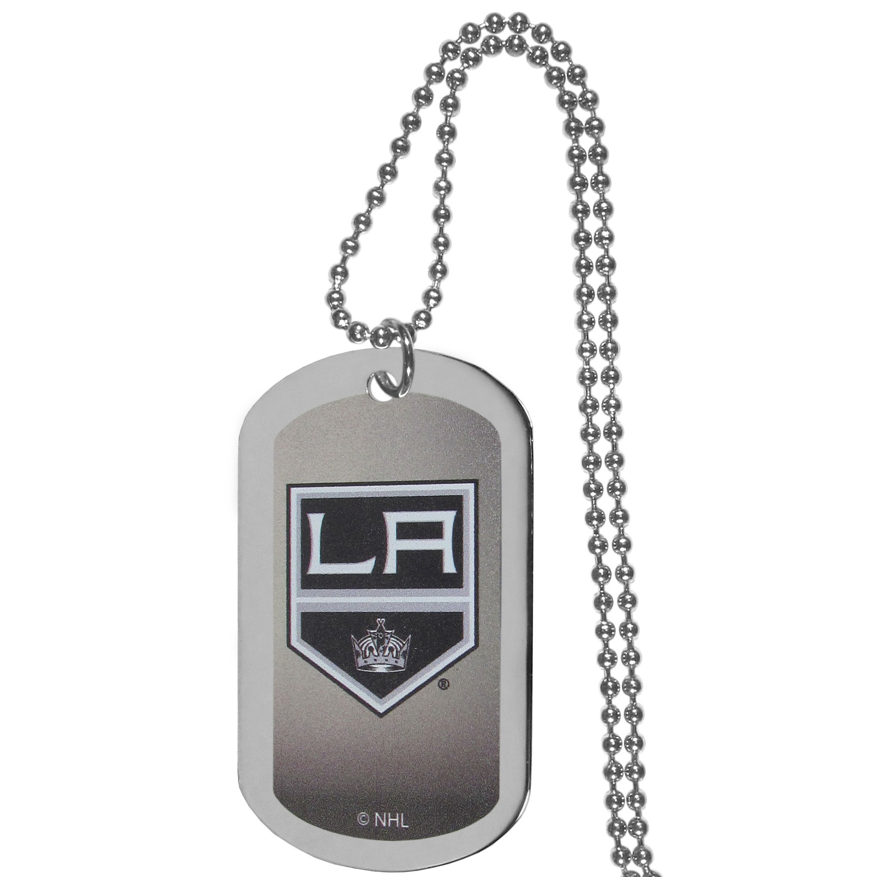 Dog tag necklaces are a fashion statement that is here to stay. The sporty version of the classic tag features a gradient print in team colors featuring a full color team logo over a high polish tag to create a bold and sporty look. The tag comes on a 26 inch ball chain with a ball and joint clasp. Any Los Angeles Kings® would be proud to wear this attractive fashion accessory.