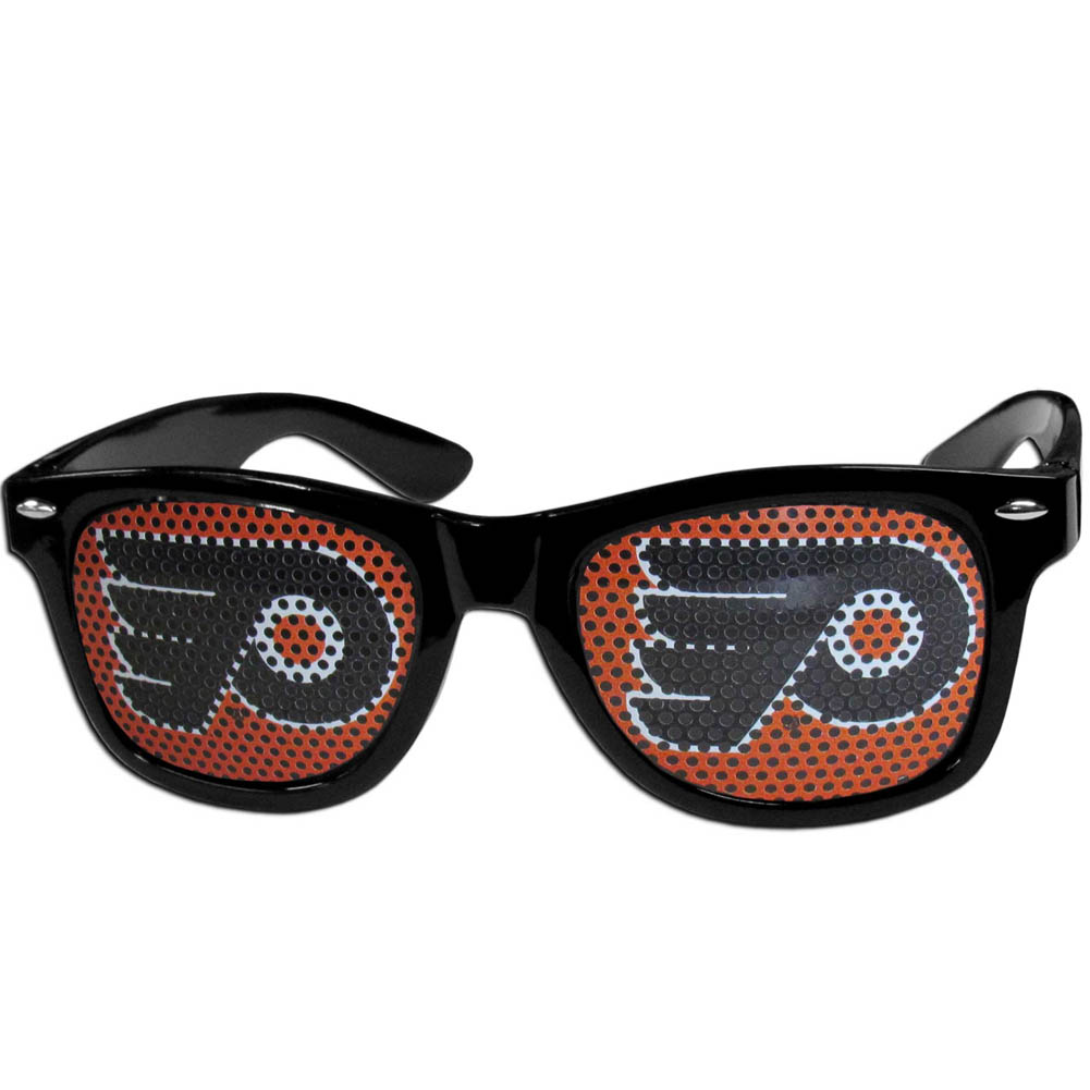 Our officially licensed game day shades are the perfect accessory for the devoted Philadelphia Flyers® fan! The sunglasses have durable polycarbonate frames with flex hinges for comfort and damage resistance. The lenses feature brightly colored team clings that are perforated for visibility.